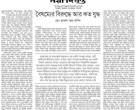 প্রথম আলো, ৩ আগস্ট ২০২৪, সমাজের সব বৈষম্যের অবসান হতে হবে