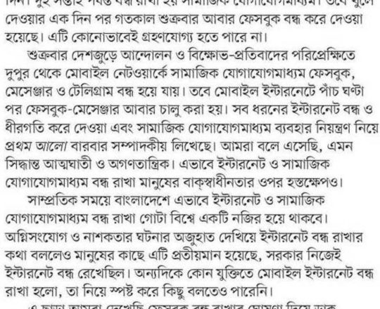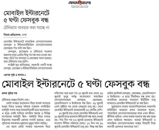 প্রথম আলো, ৩ আগস্ট ২০২৪, আবারও ফেসবুক বন্ধ