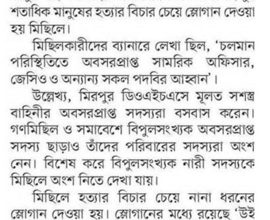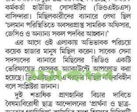 সমকাল, ৩ আগস্ট ২০২৪, অবসরপ্রাপ্ত সামরিক কর্মকর্তা ও পরিবারের সদস্যদের গণমিছিল
