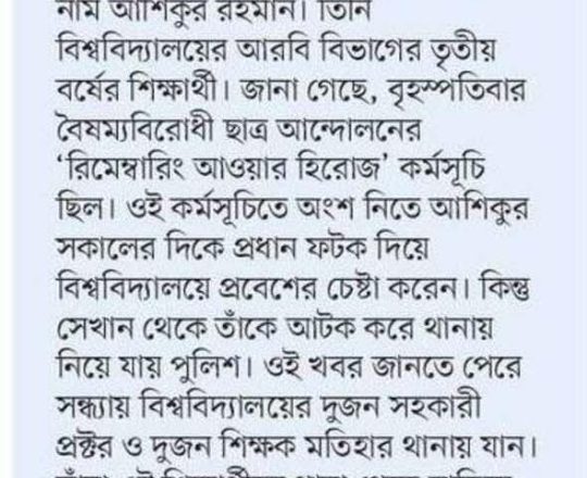 প্রথম আলো, ৩ আগস্ট ২০২৪, আরেক ছাত্রকে ছাড়িয়ে আনলেন রাবি শিক্ষকেরা