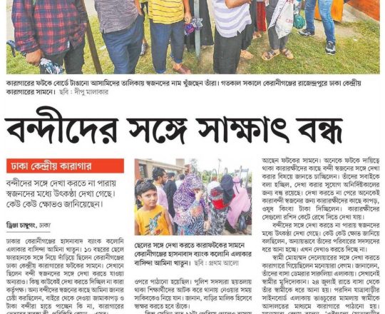 প্রথম আলো, ৩ আগস্ট ২০২৪, বন্দীদের সঙ্গে সাক্ষাৎ বন্ধ