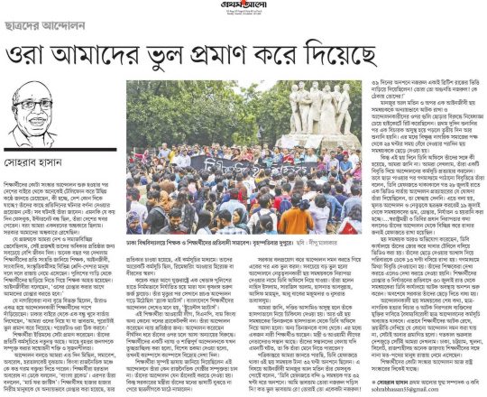 প্রথম আলো, ৩ আগস্ট ২০২৪, ওরা আমাদের ভুল প্রমাণ করে দিয়েছে