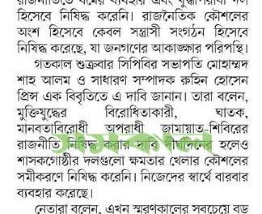 সমকাল, ৩ আগস্ট ২০২৪, জামায়াতকে নিষিদ্ধ করুন যুদ্ধাপরাধী দল হিসেবে- সিপিবির দাবি