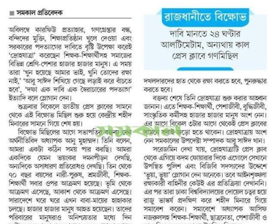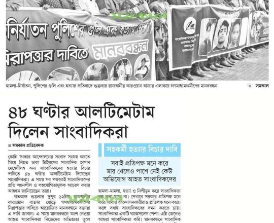সমকাল, ৩ আগস্ট ২০২৪, ৪৮ ঘণ্টার আলটিমেটাম দিলেন সাংবাদিকরা