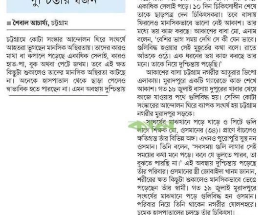 সমকাল, ৩ আগস্ট ২০২৪, মানসিক অস্থিরতায় ভুগছেন আহতরা