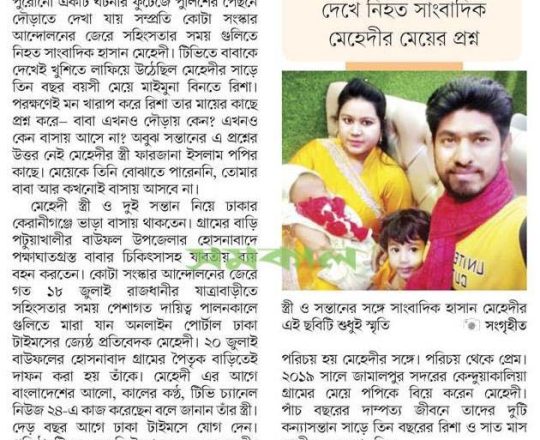 সমকাল, ৩ আগস্ট ২০২৪, 'আম্মু কান্না করো না বাবা এসে পড়বে'
