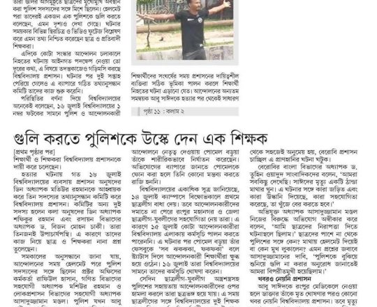 সমকাল, ৩ আগস্ট ২০২৪, গুলি করতে পুলিশকে উস্কে দেন এক শিক্ষক
