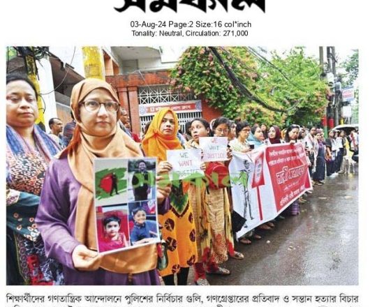 সমকাল, ৩ আগস্ট ২০২৪, সন্তান হত্যার বিচার দাবিতে শুক্রবার চট্টগ্রাম প্রেস ক্লাবের সামনে সমাবেশ করেন নারীরা
