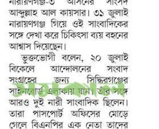 সমকাল, ৩ আগস্ট ২০২৪, সেই সাংবাদিকের চিকিৎসা খরচ দেবেন এমপি