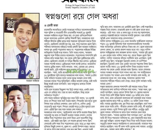 সমকাল, ৩ আগস্ট ২০২৪, স্বপ্নগুলো রয়ে গেল অধরা