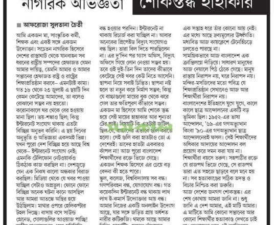 সমকাল, ৩ আগস্ট ২০২৪, নাগরিক অভিজ্ঞতা শোকস্তব্ধ হাহাকার