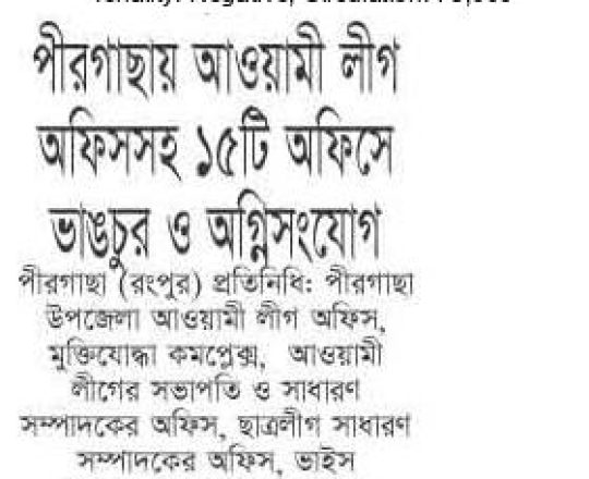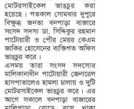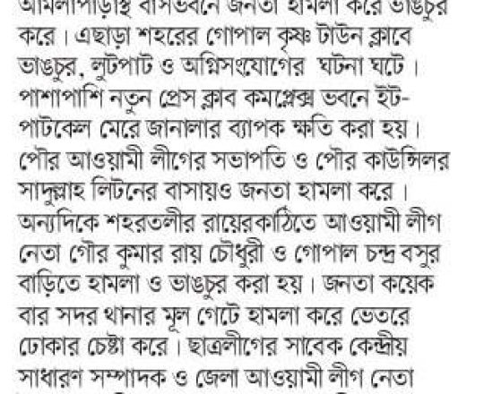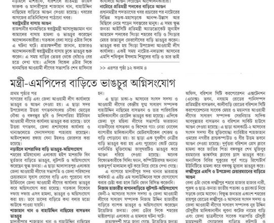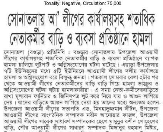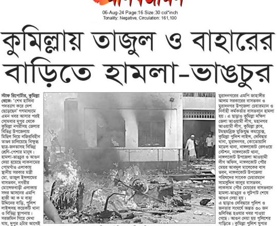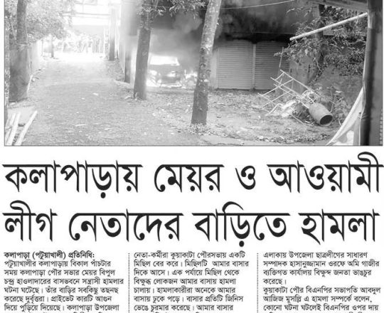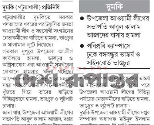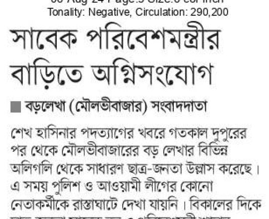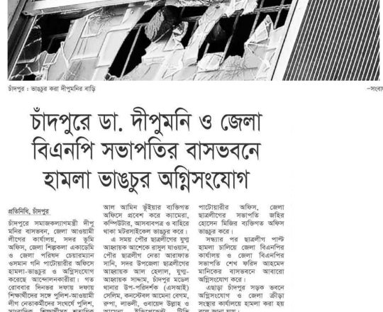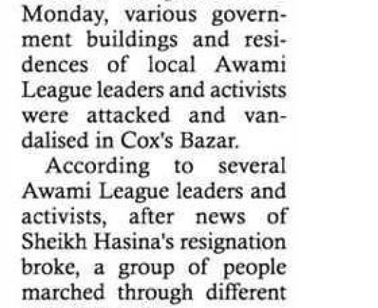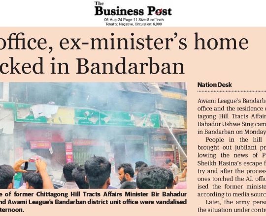 Business Post, 6 August 2024, AL office, ex-minister's home attacked in Bandarban