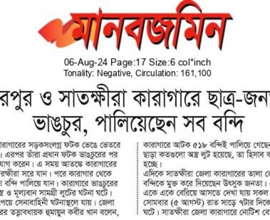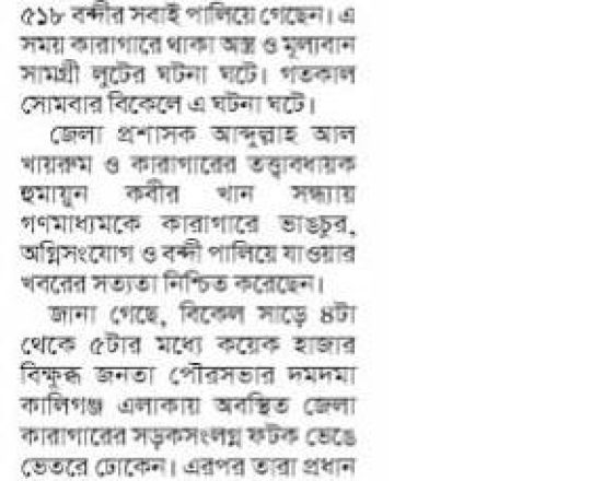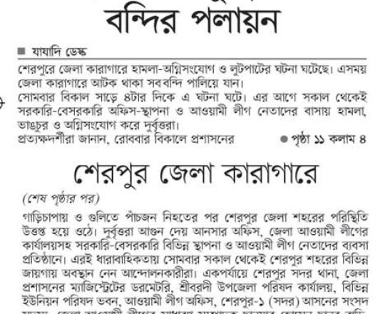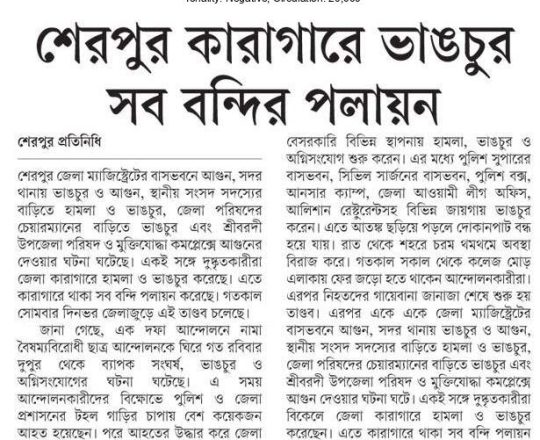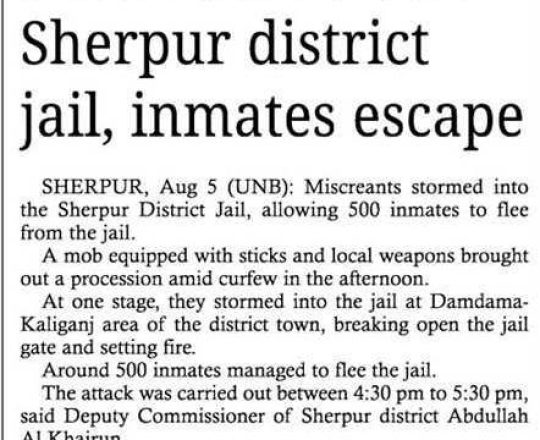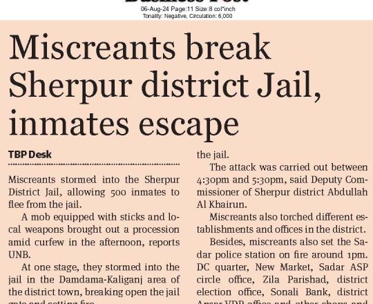 Business Post, 6 August 2024, Miscreants break Sherpur district Jail, inmates escape