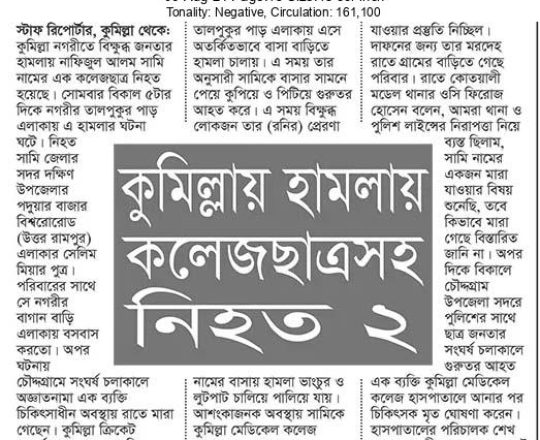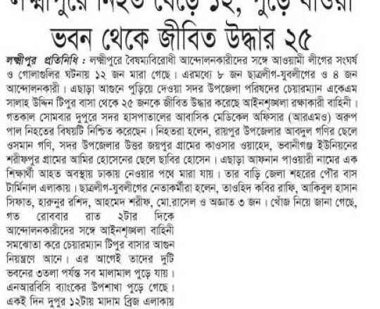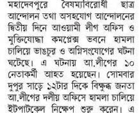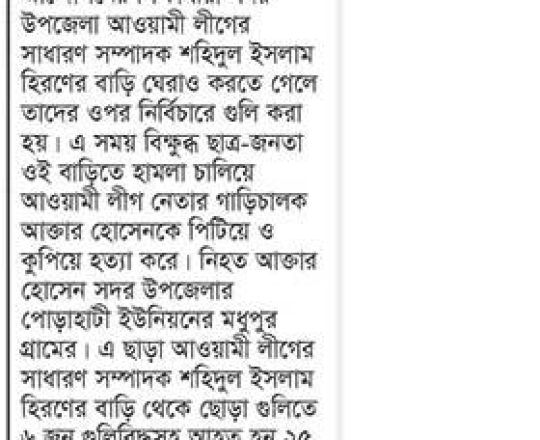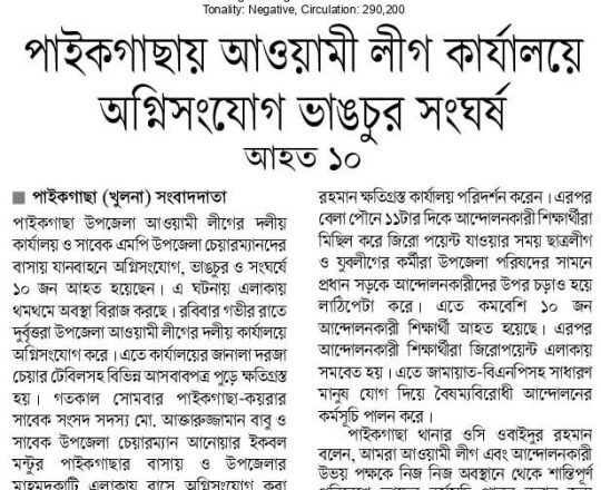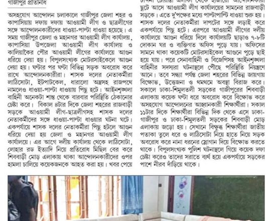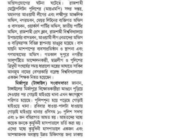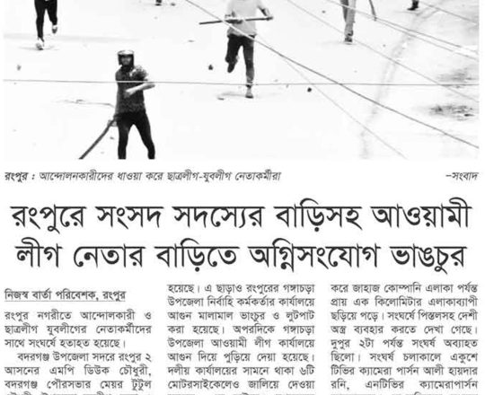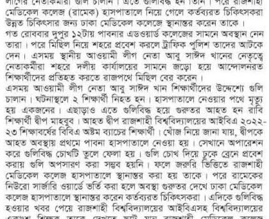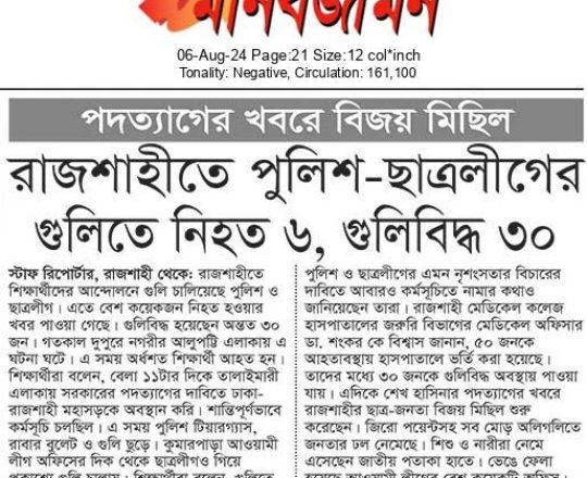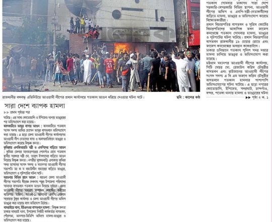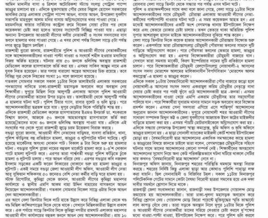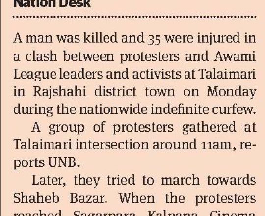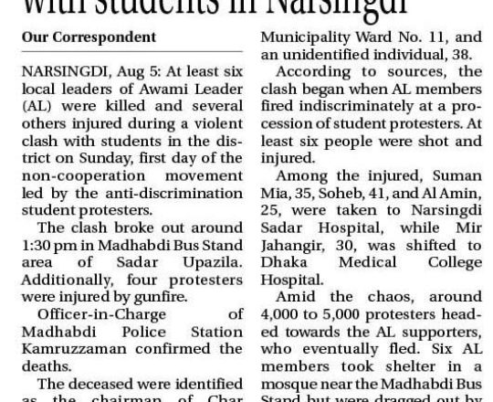Business Post, 6 August 2024, AL activists, protesters clash kills one in Rajshahi