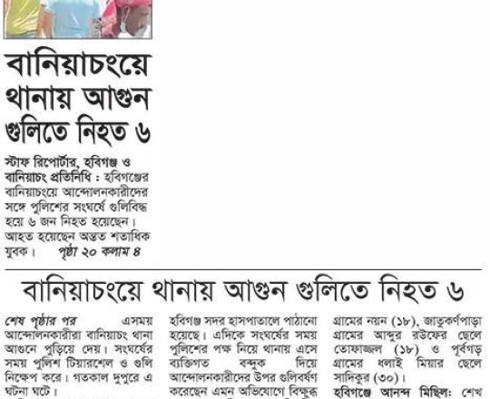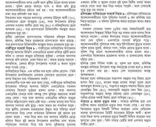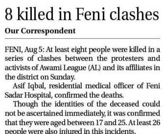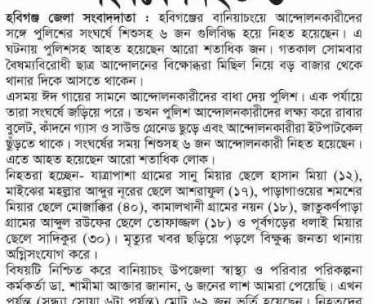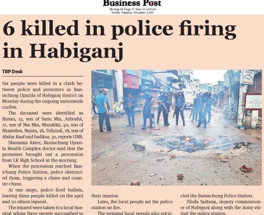Business Post, 6 August 2024, 6 killed in police firing in Habiganj