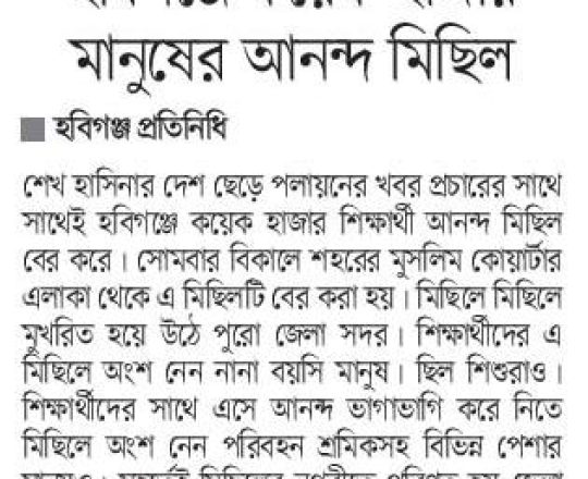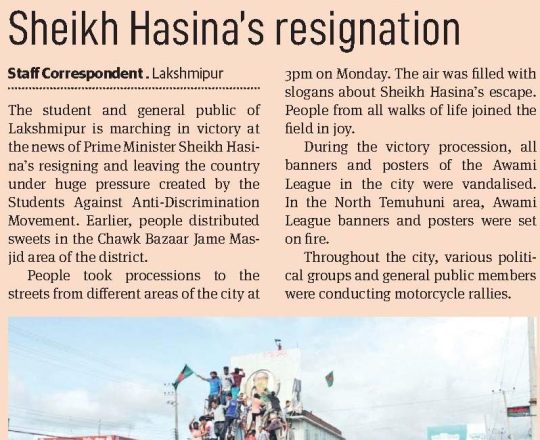 Business Post, 6 August 2024, Victory rally in Lakshmipur over Sheikh Hasina's resignation
