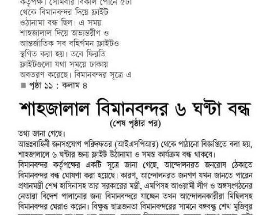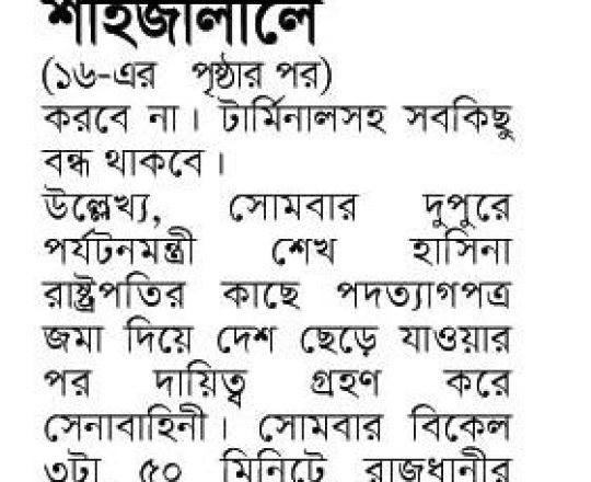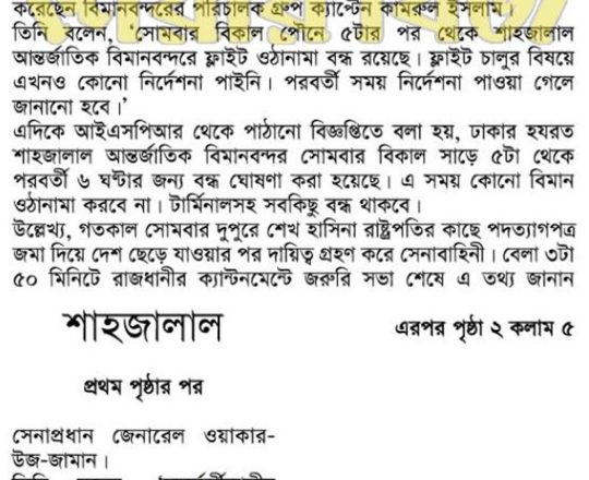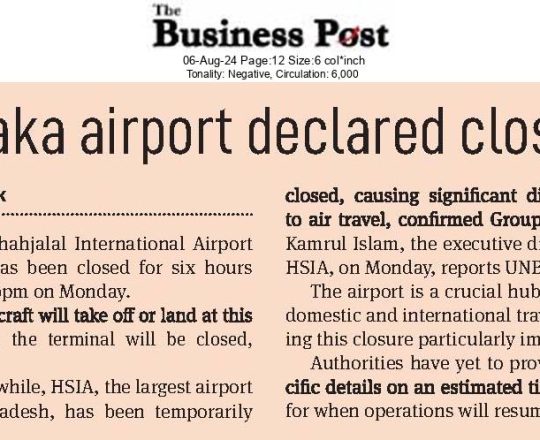 Business Post, 6 August 2024, Dhaka airport declared closed