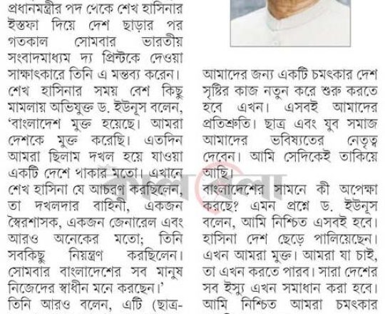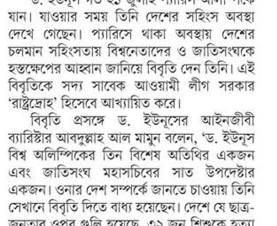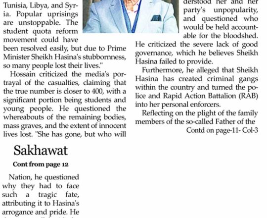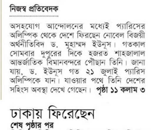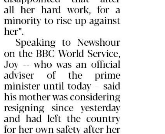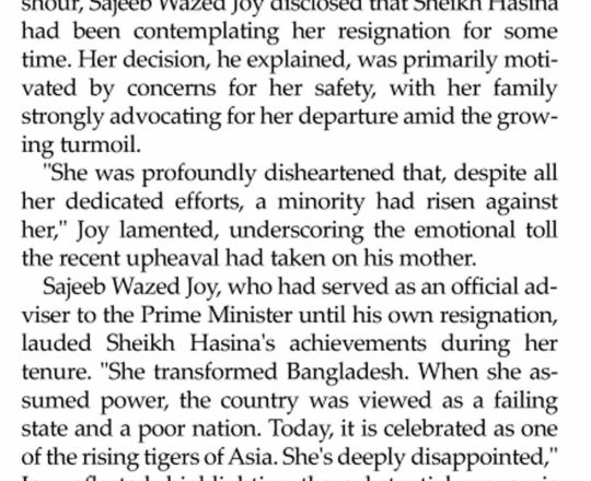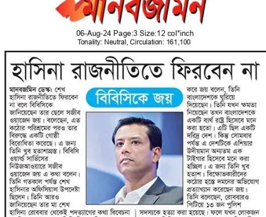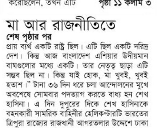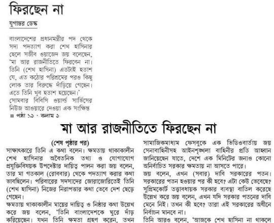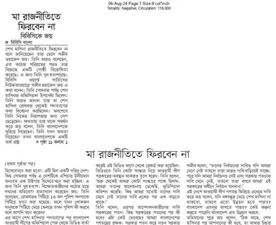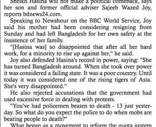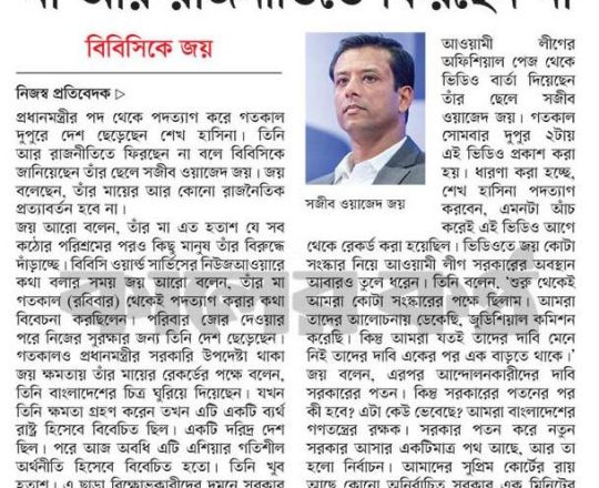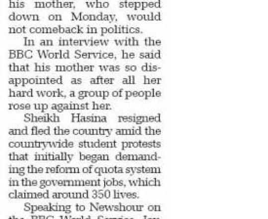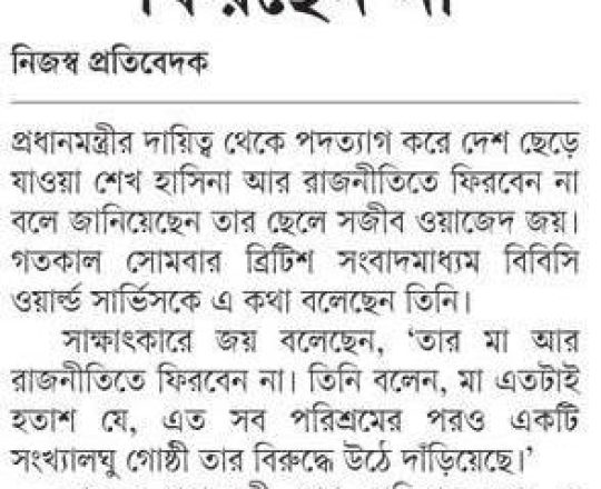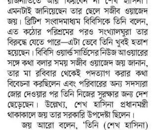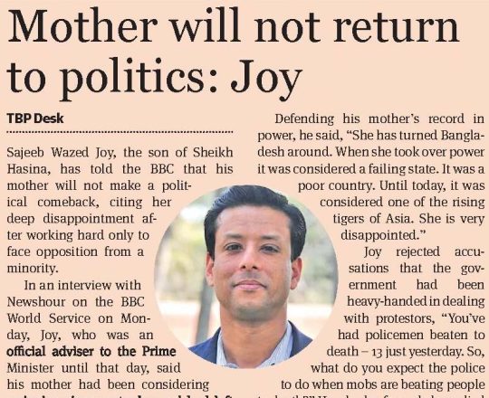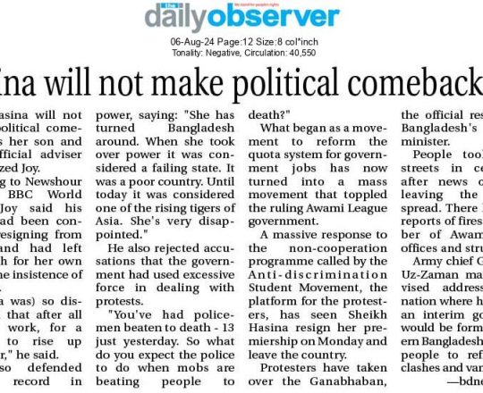Daily Observer, 6 August 2024, Hasina will not make political comeback: Joy