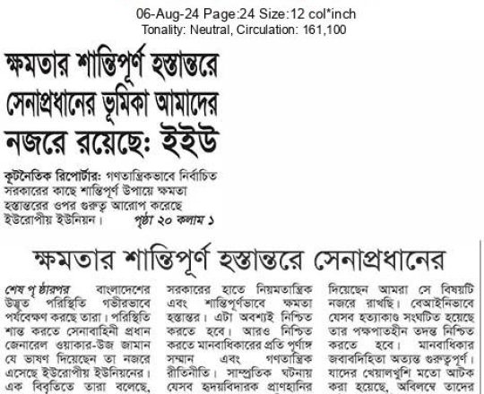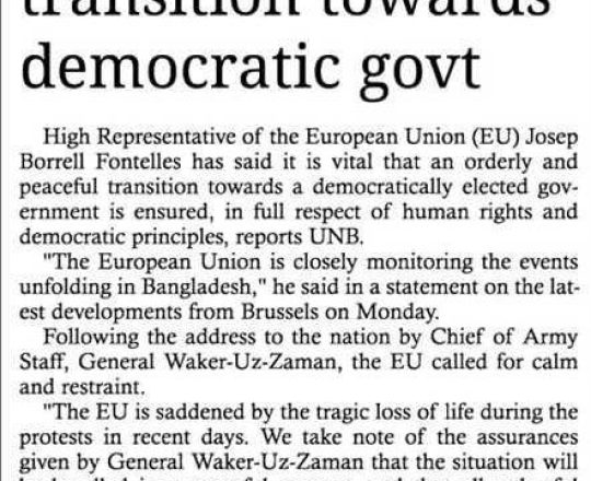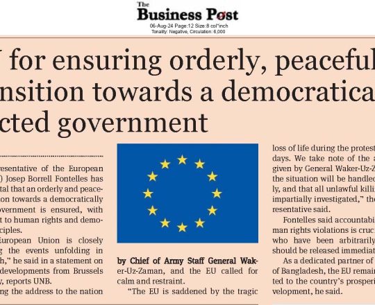 Business Post, 6 August 2024, EU for ensuring orderly, peaceful transition towards a democratically elected government