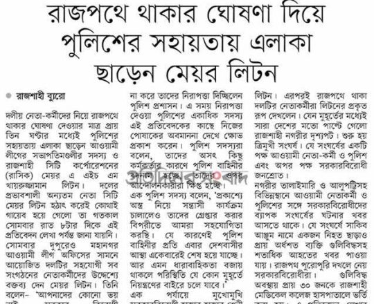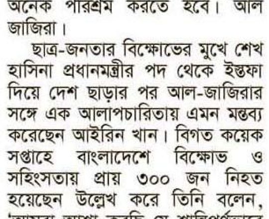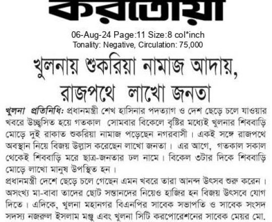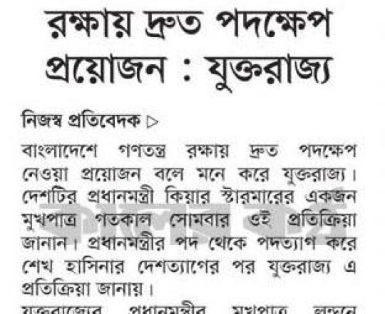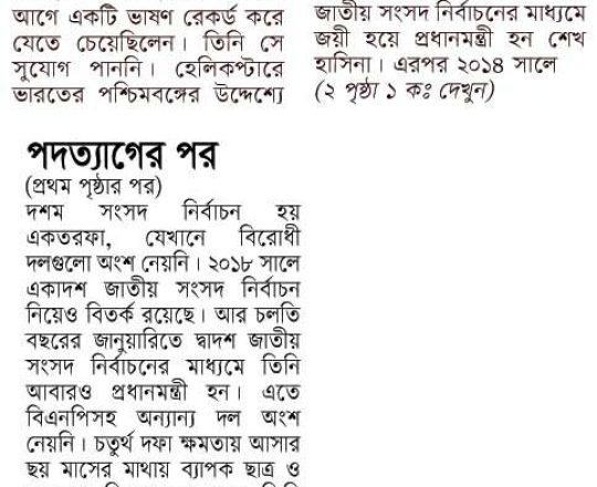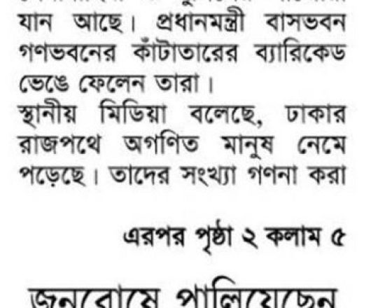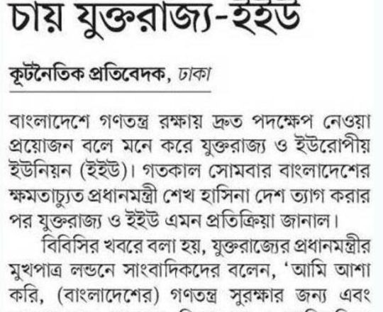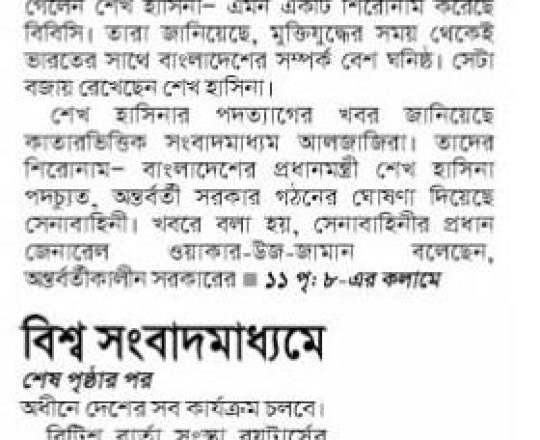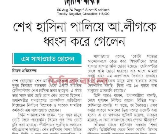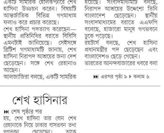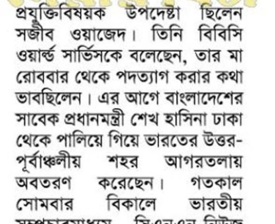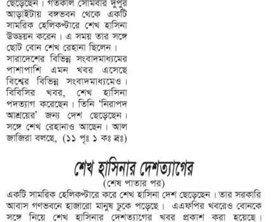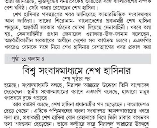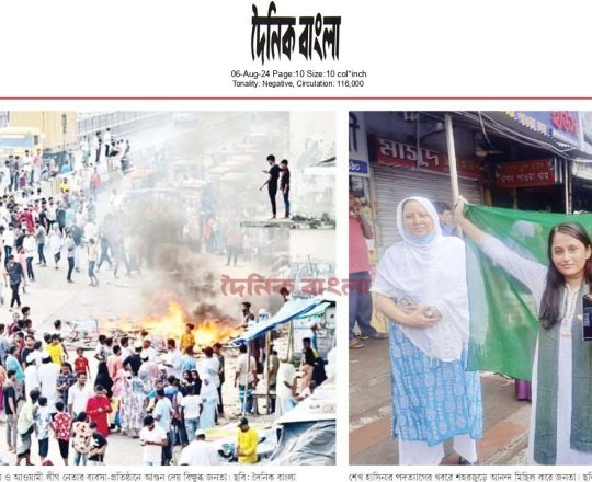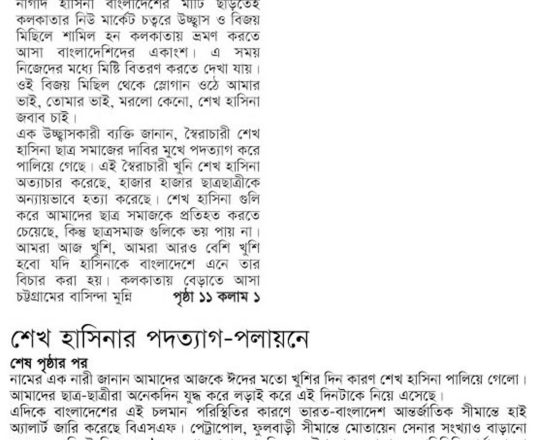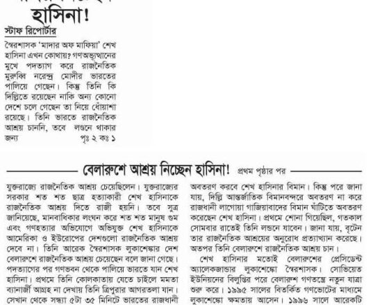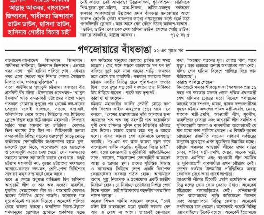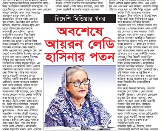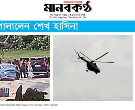 সংগ্রাম, ৬ আগস্ট ২০২৪, বিশ্বমিডিয়ায় তোলপাড় হাসিনার ভারতে পলায়ন