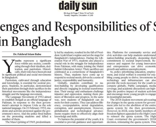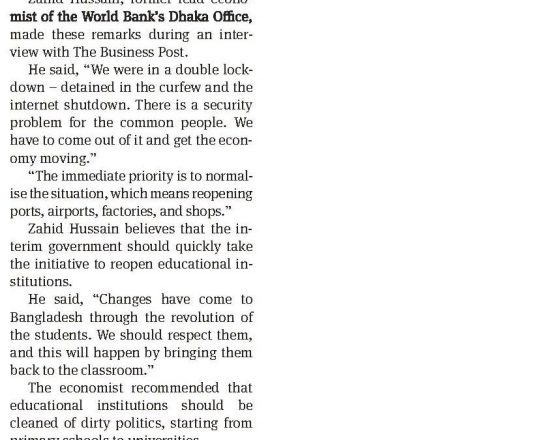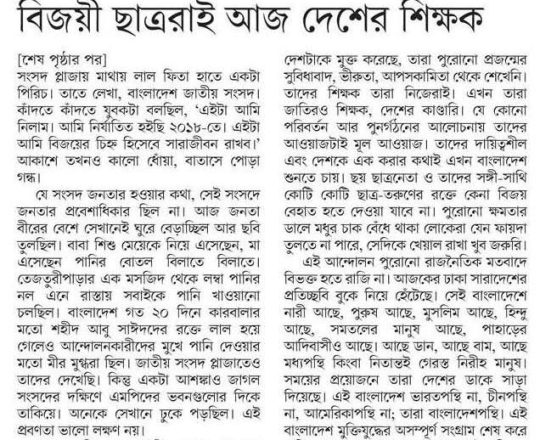 Business Post, 6 August 2024, GM Quader extends full support to students