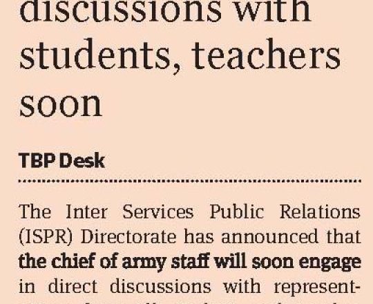 Business Post, 6 August 2024, Army chief to hold discussions with students, teachers soon
