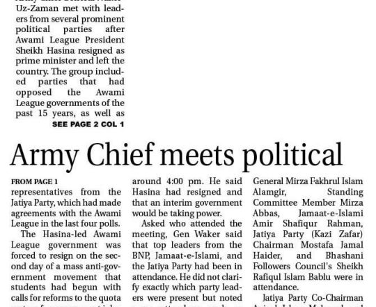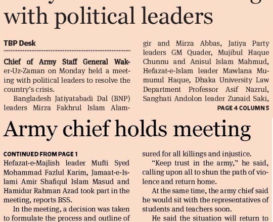 Business Post, 6 August 2024, Army chief holds meeting with political leaders