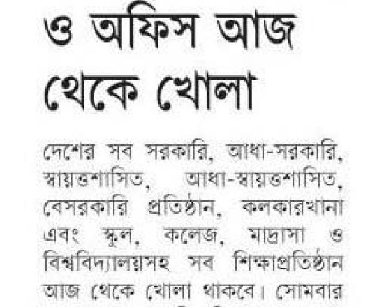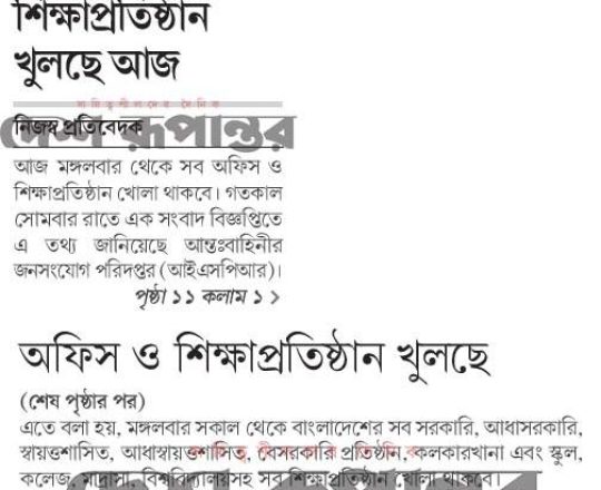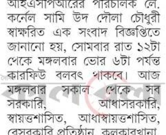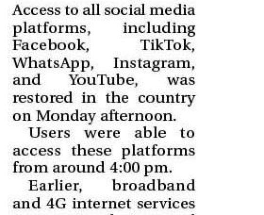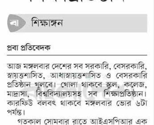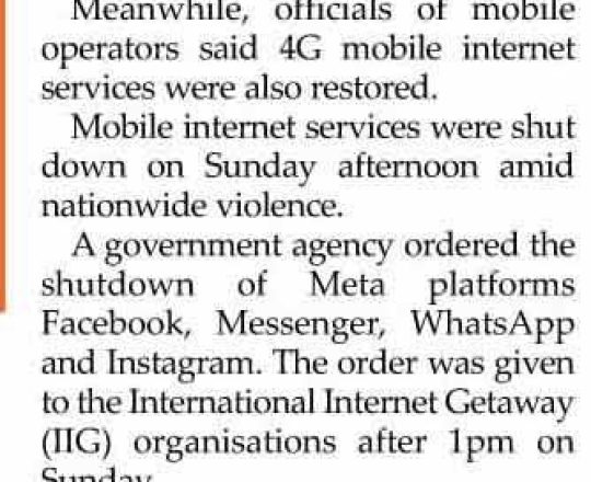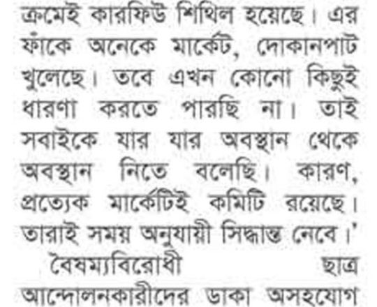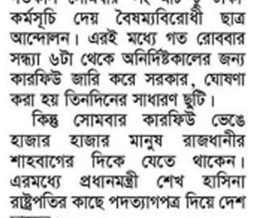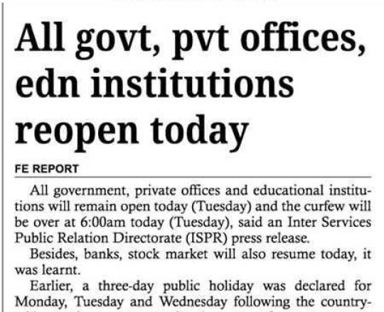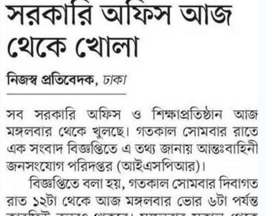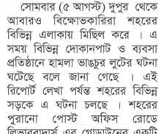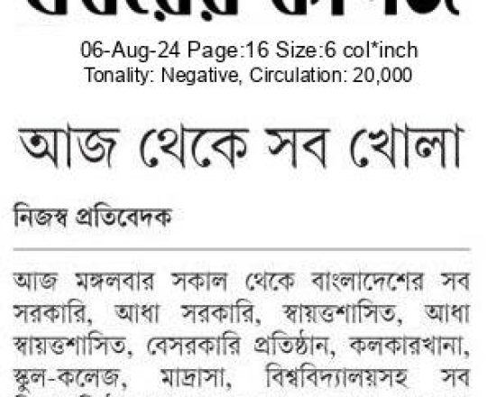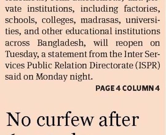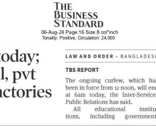 Business Standard, 6 August 2024, Curfew ends today; all educational, pvt institutions, factories also open