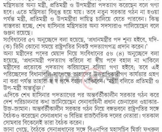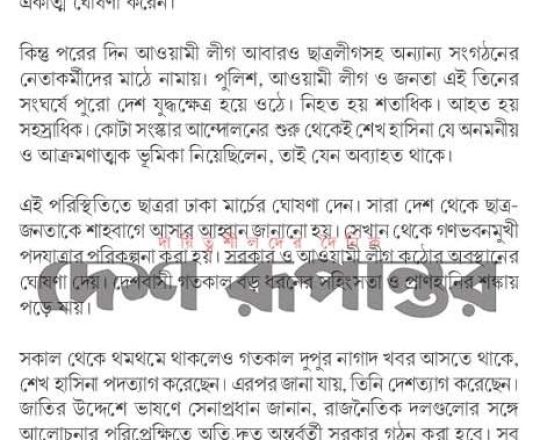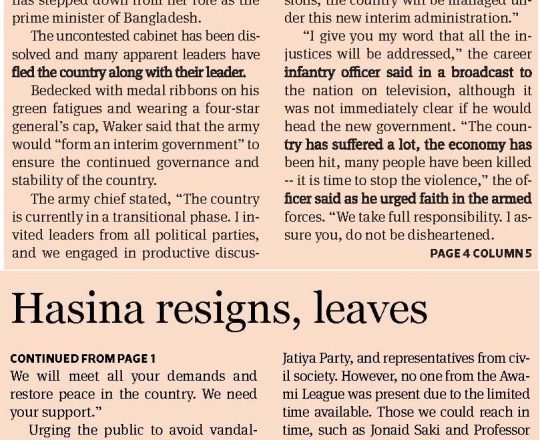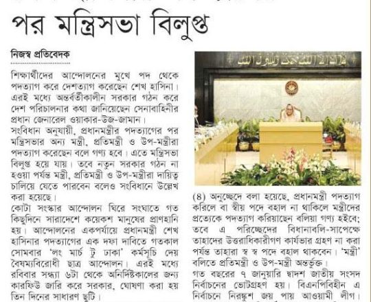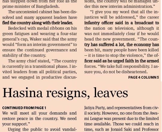 Business Post, 6 August 2024, Hasina resigns, leaves country; interim govt very soon: Army chief