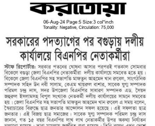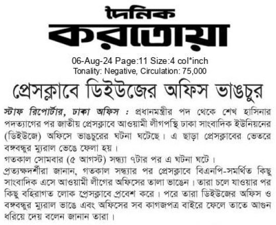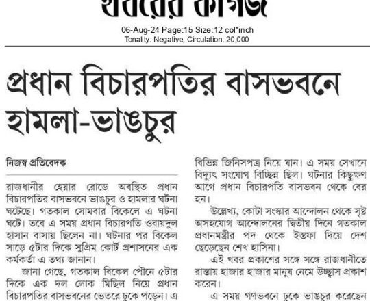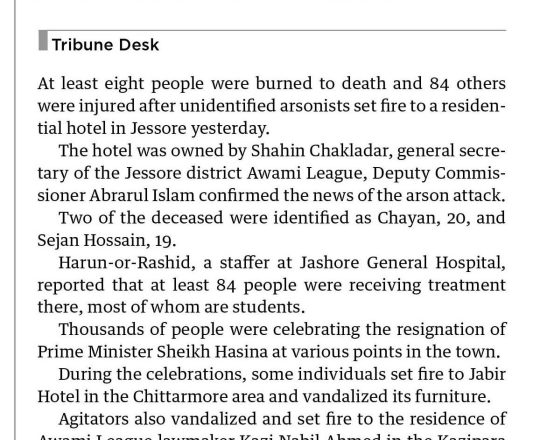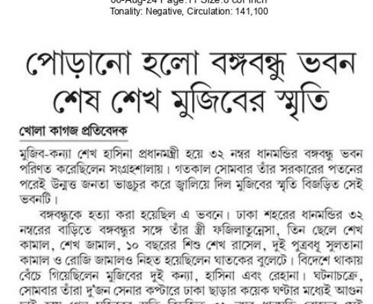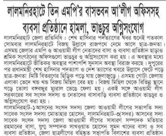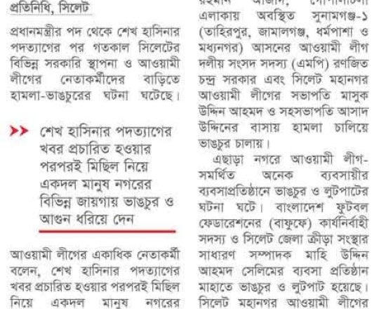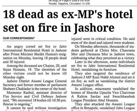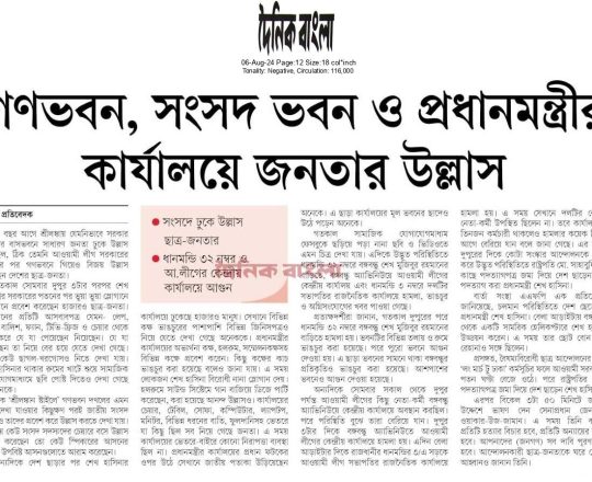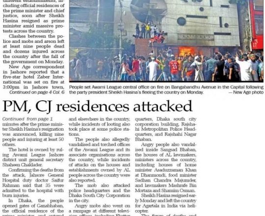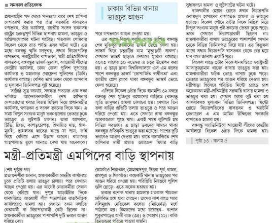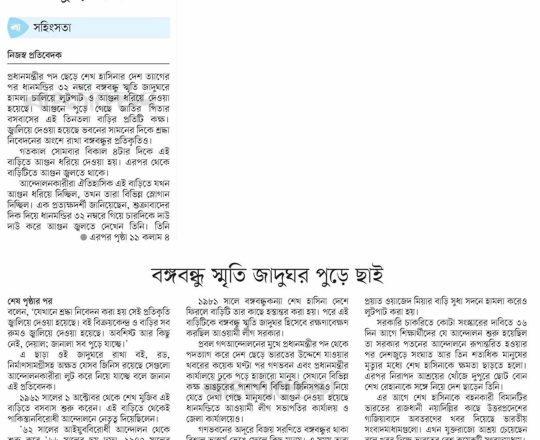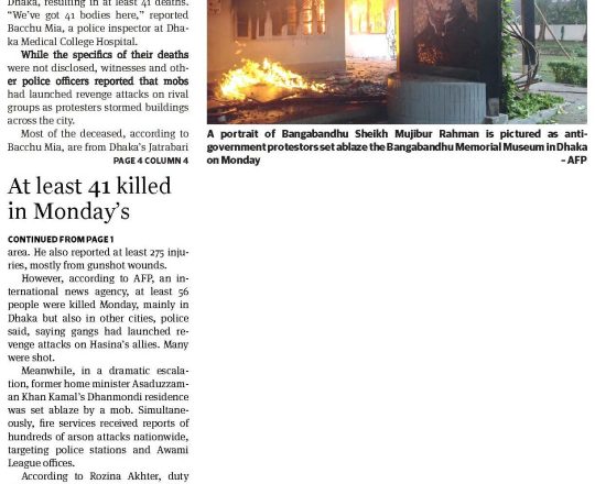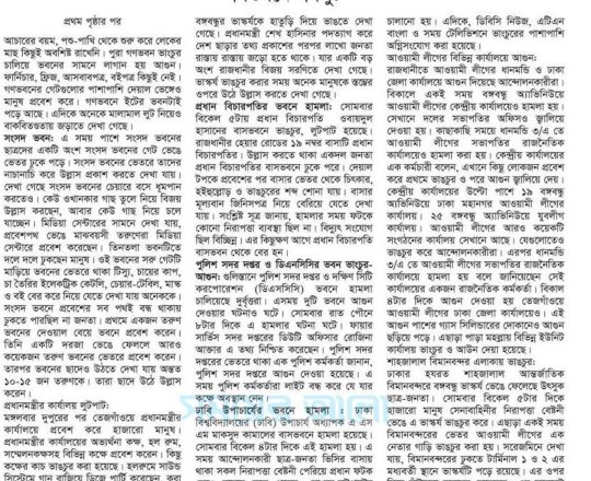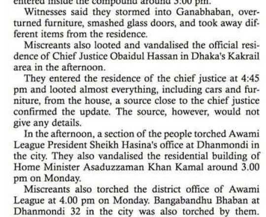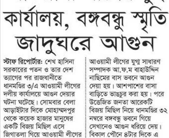 Business Post, 6 August 2024, Bangabandhu Museum, AL offices in Dhaka attacked