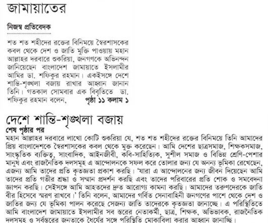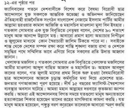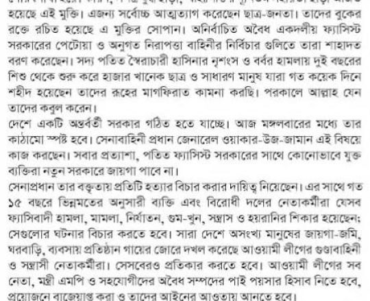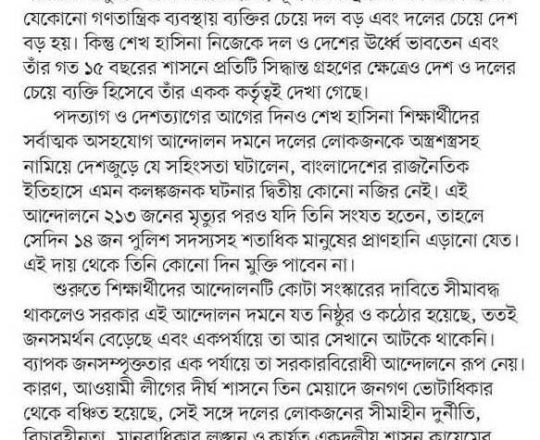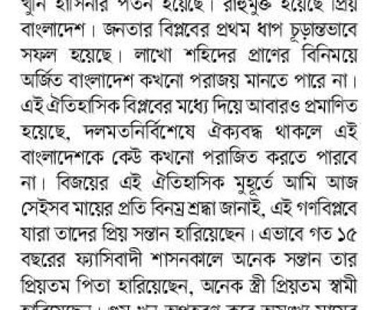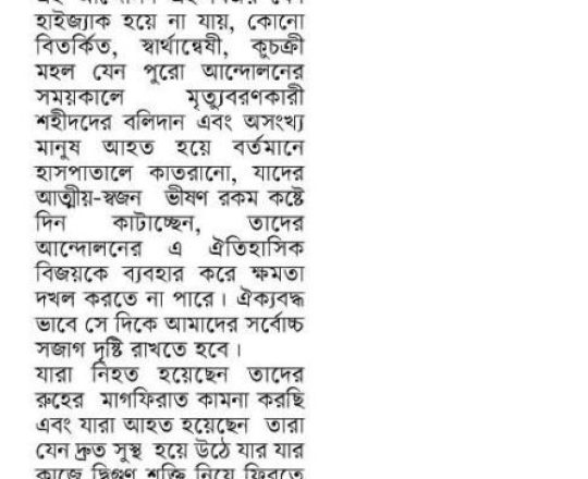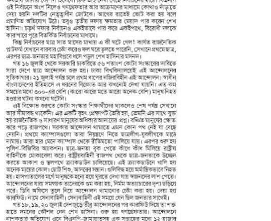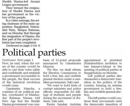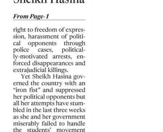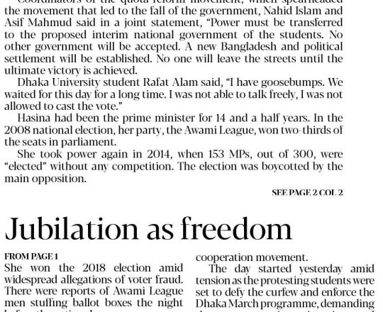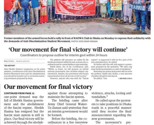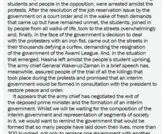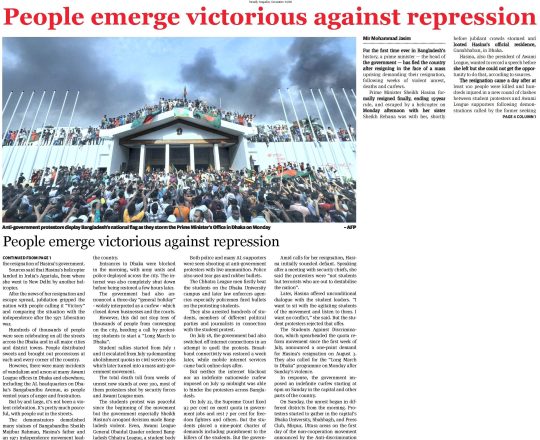 Business Standard, 6 August 2024, 'Our movement for final victory will continue'
