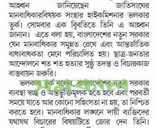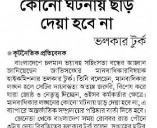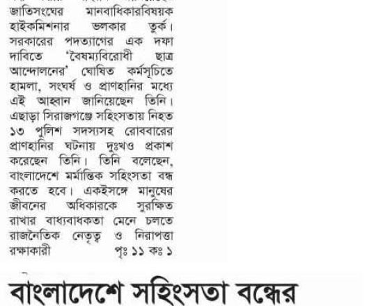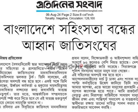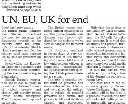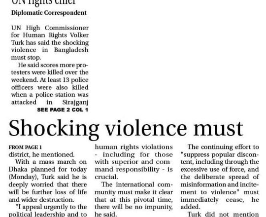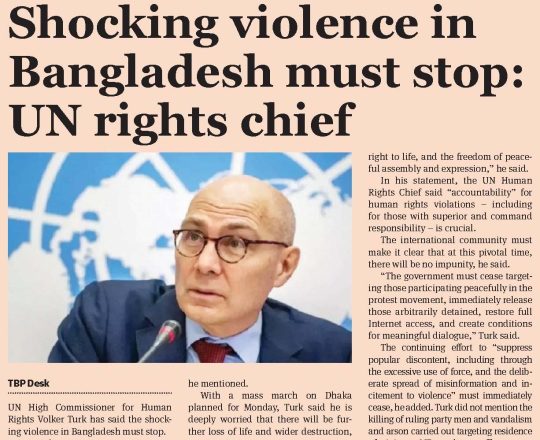 Daily Observer, 6 August 2024, Shocking violence must stop in BD: UN rights chief