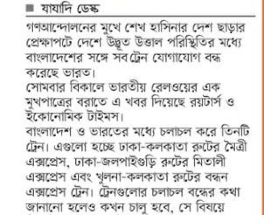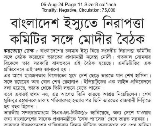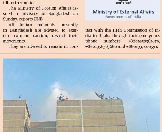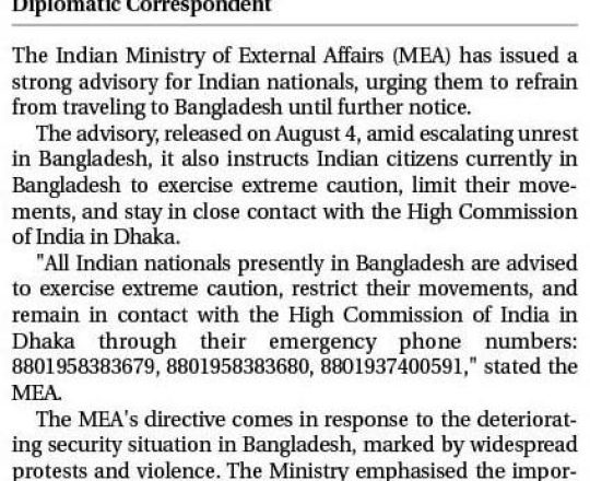 Daily Observer, 6 August 2024, Indian MEA issues advisory for citizens in BD