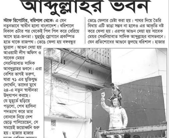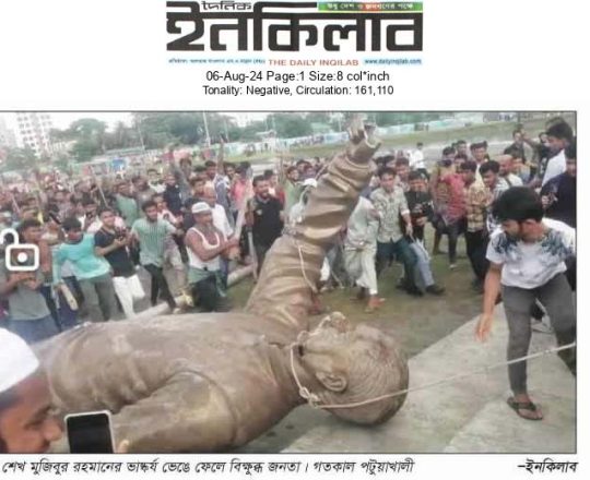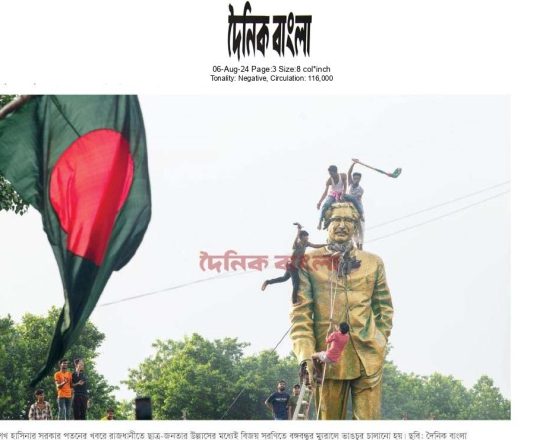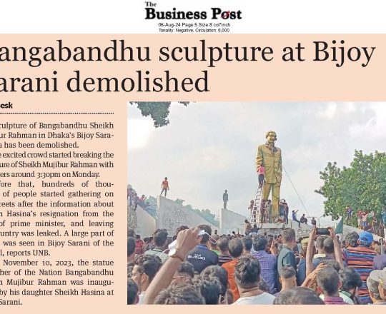 Business Post, 6 August 2024, Bangabandhu sculpture at Bijoy Sarani demolished