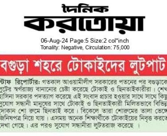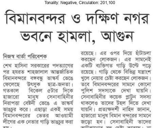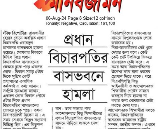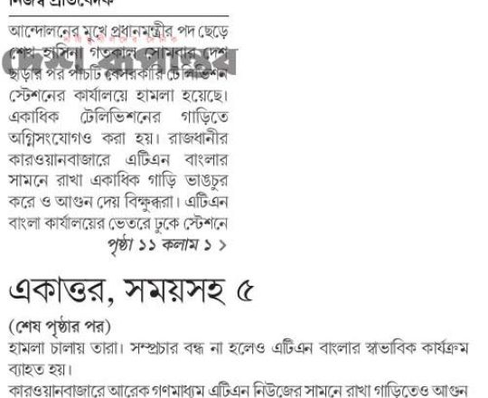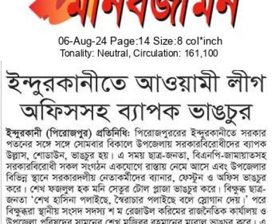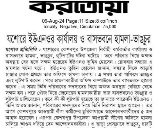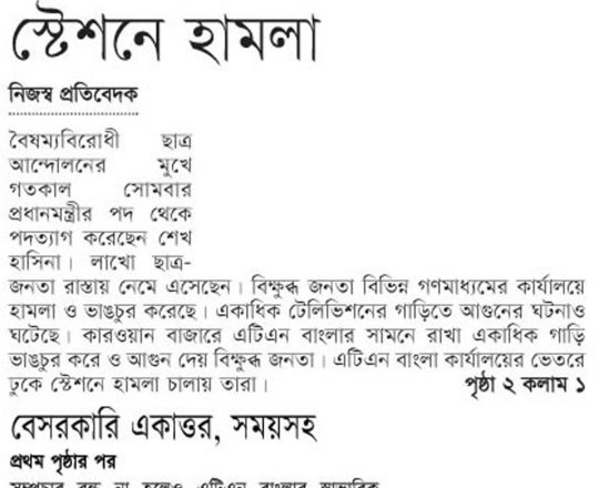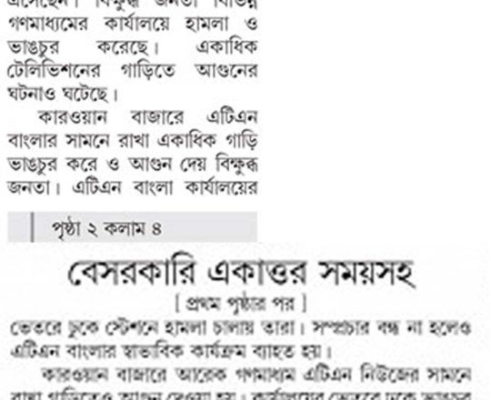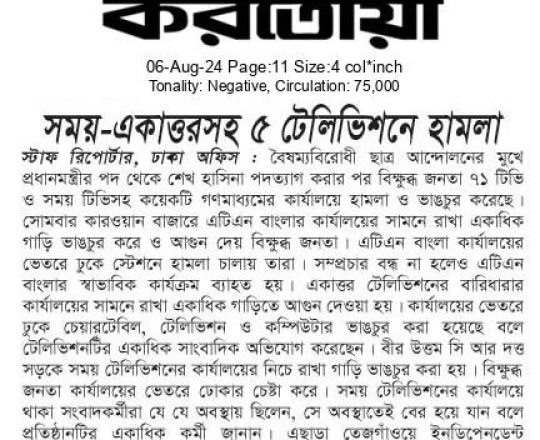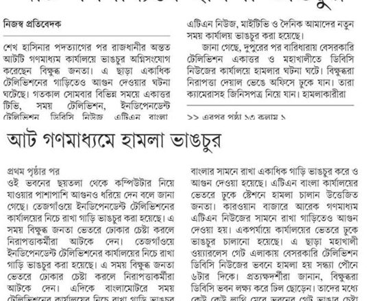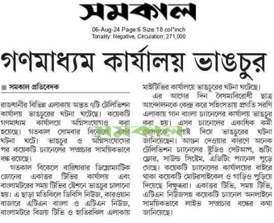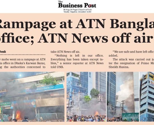 Business Post, 6 August 2024, Rampage at ATN Bangla office; ATN News off air