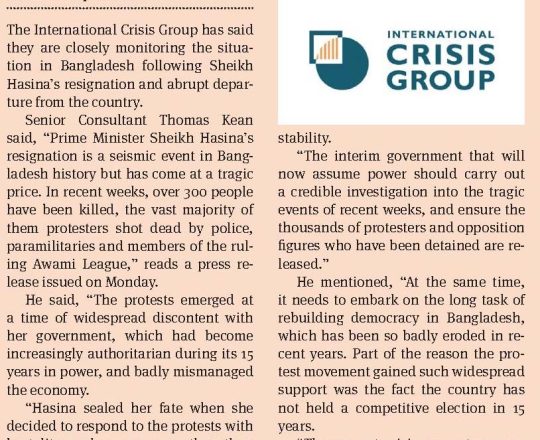 Business Post, 6 August 2024, International Crisis Group monitors Bangladesh