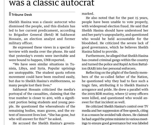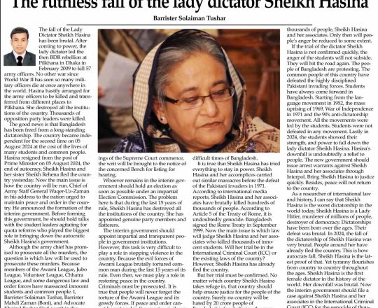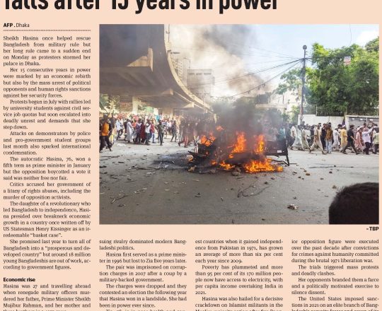 Business Post, 6 August 2024, Bangladesh's iron lady Sheikh Hasina falls after 15 years in power