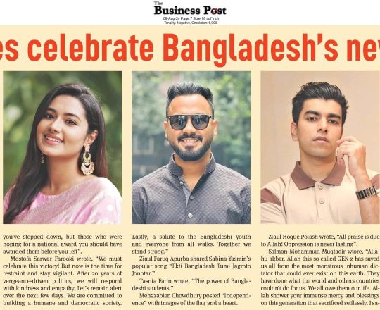 Business Post, 6 August 2024, Celebrities celebrate Bangladesh's new chapter