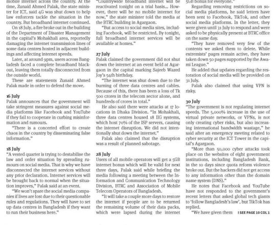 Business Standard, 6 August 2024, Bizarre claims and apologies: The statements of Palak during internet blackouts