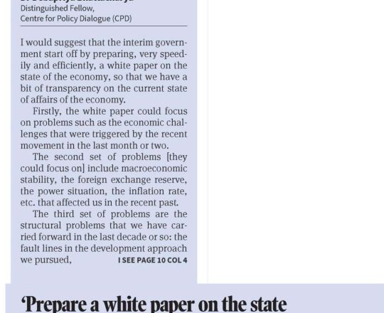 Business Standard, 6 August 2024, 'Prepare a white paper on the state of the economy'