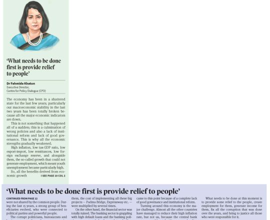 Business Standard, 6 August 2024, 'What needs to be done first is provide relief to people'
