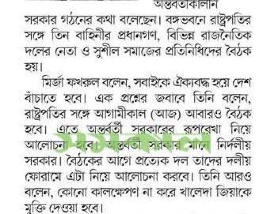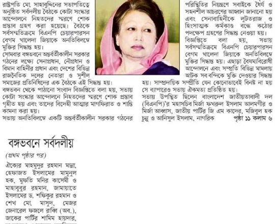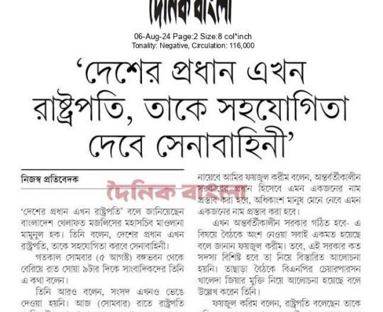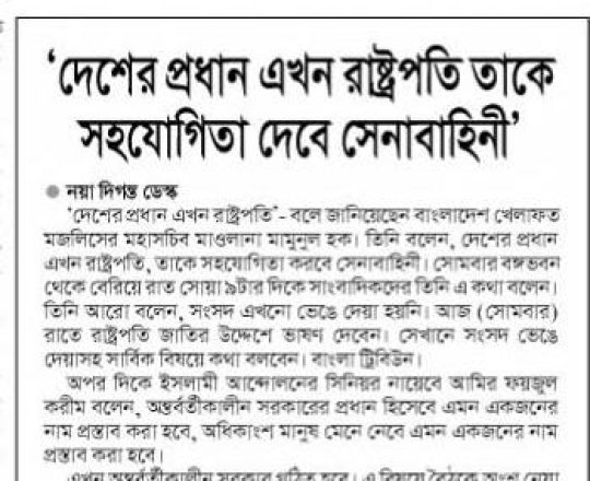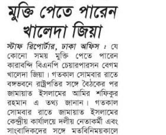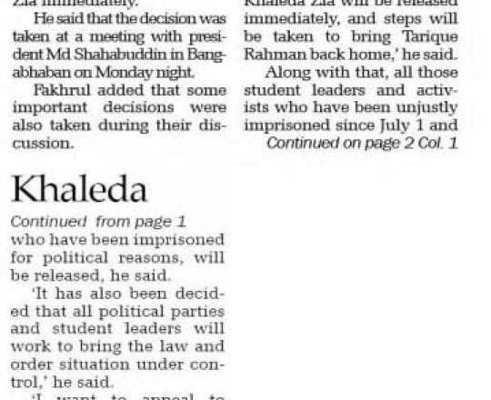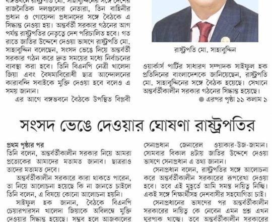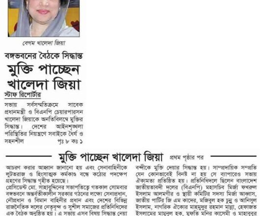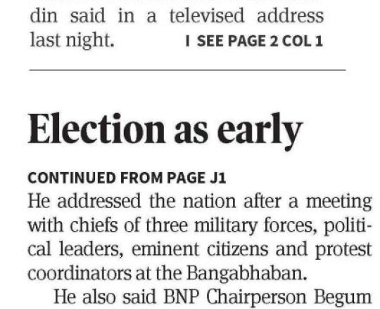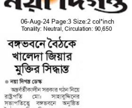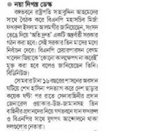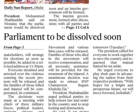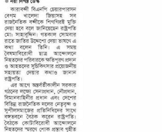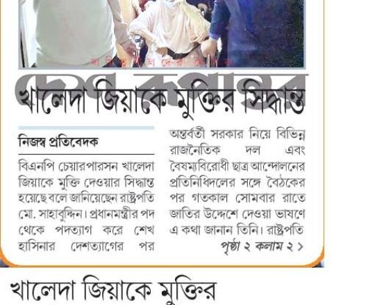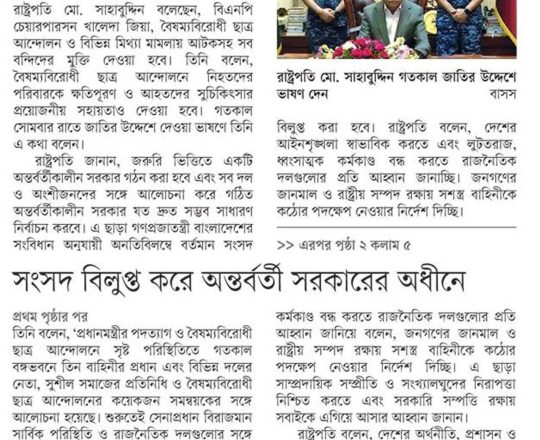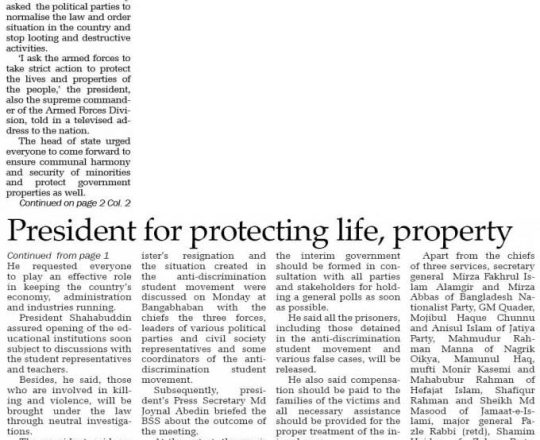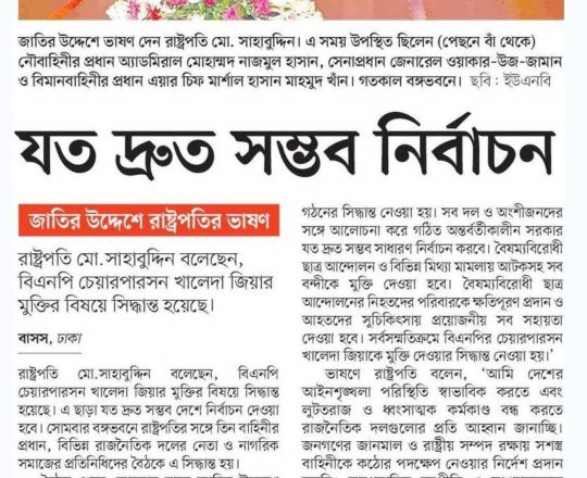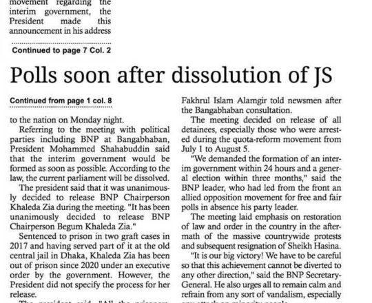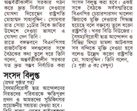 Business Standard, 6 August 2024, Election as early as possible, Khaleda to be freed: President