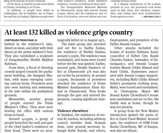 Business Standard, 6 August 2024, At least 132 killed as violence grips country