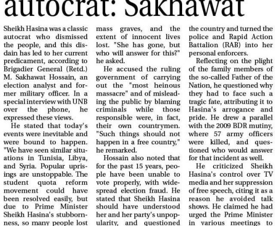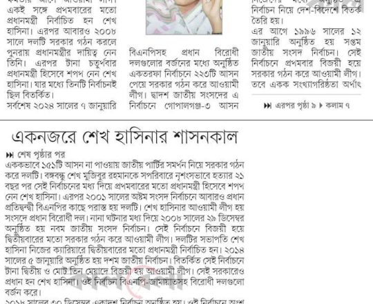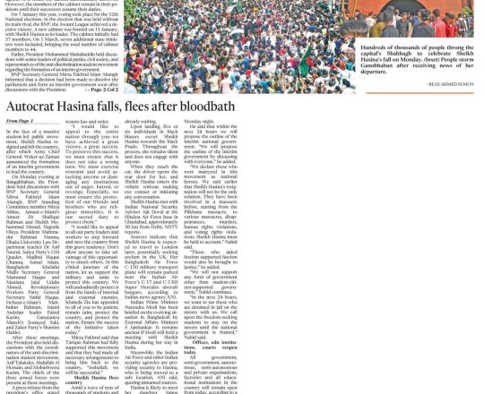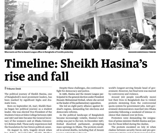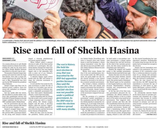 Business Standard, 6 August 2024, Rise and fall of Sheikh Hasina