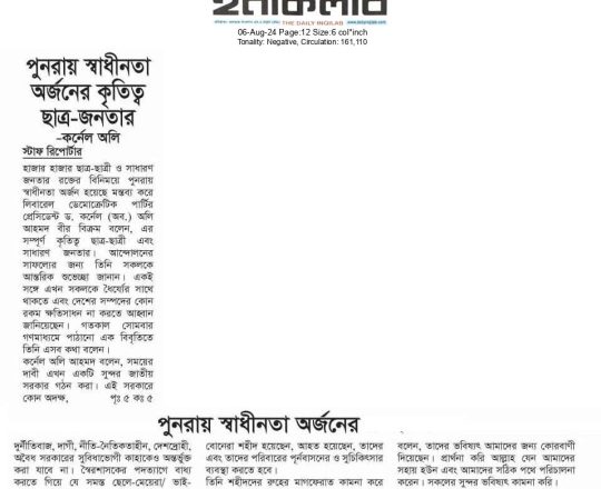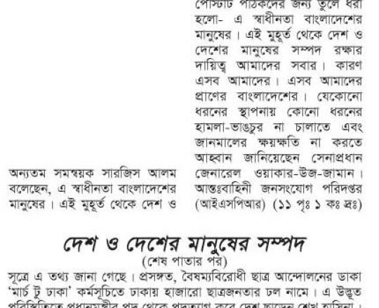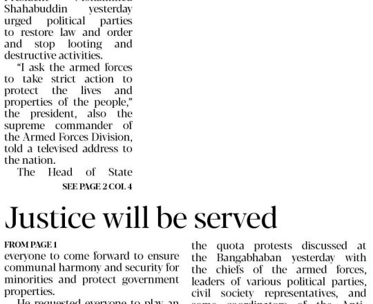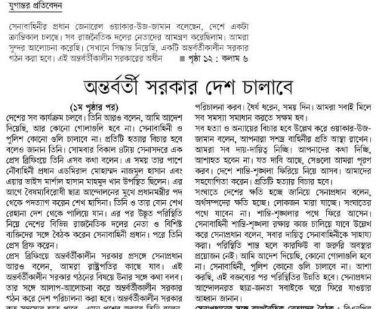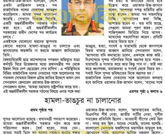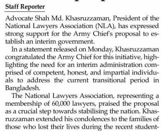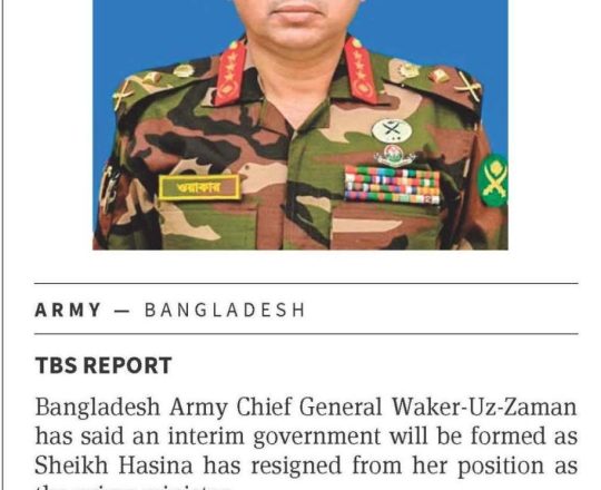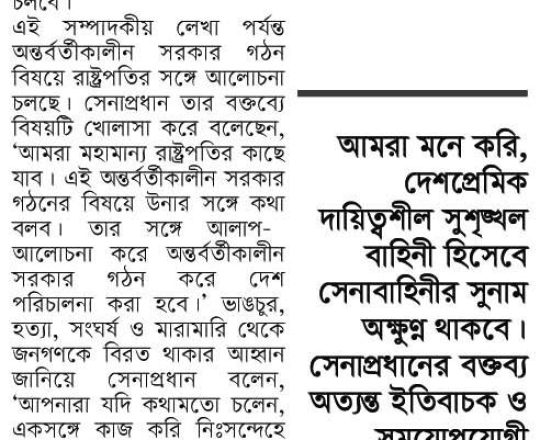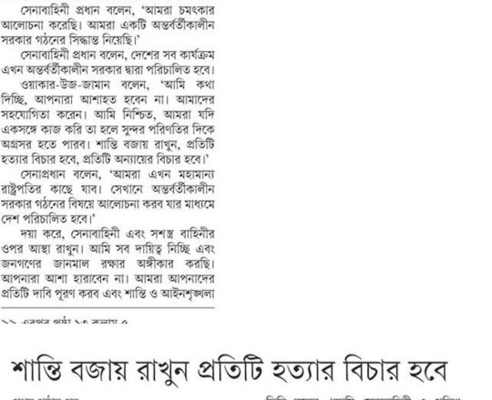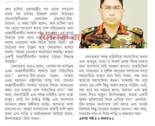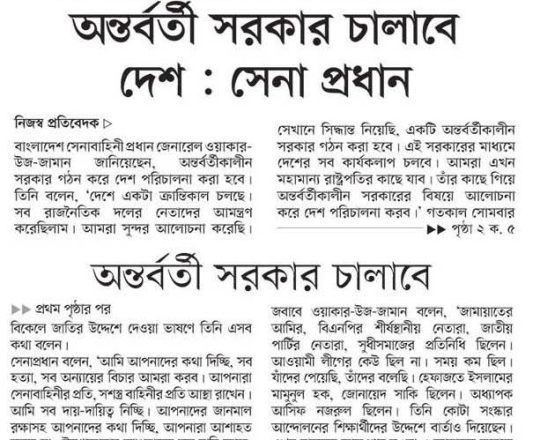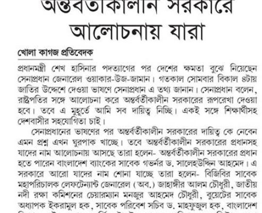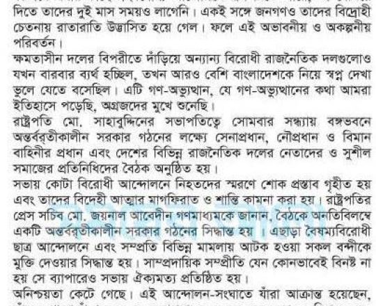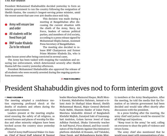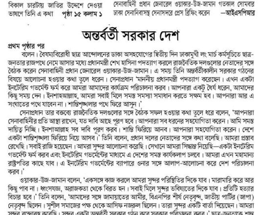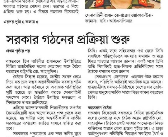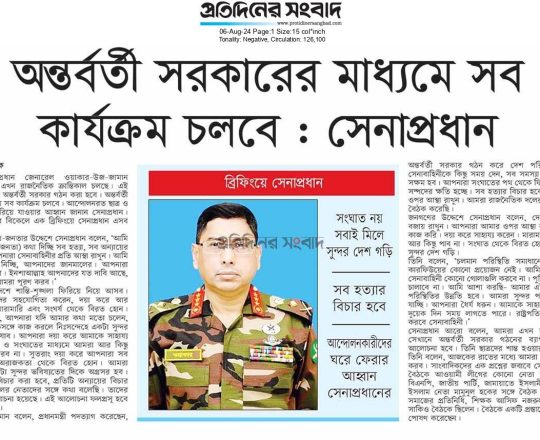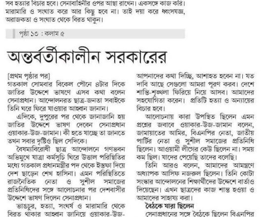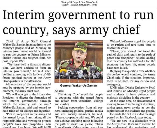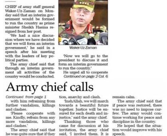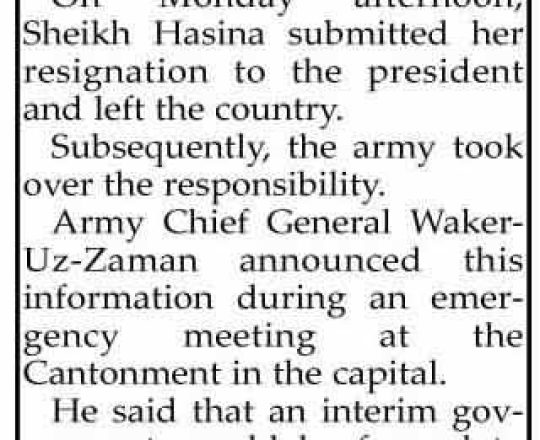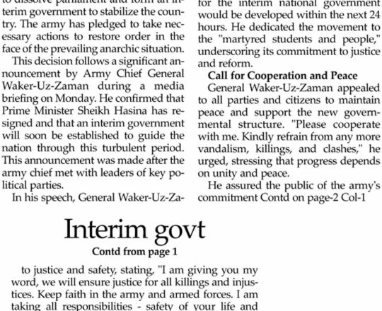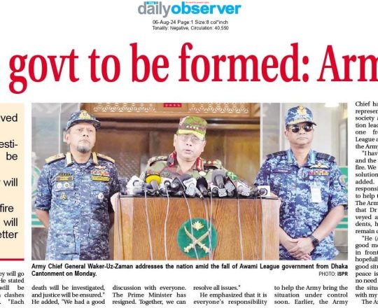 Daily Observer, 6 August 2024, Interim govt to be formed: Army Chief