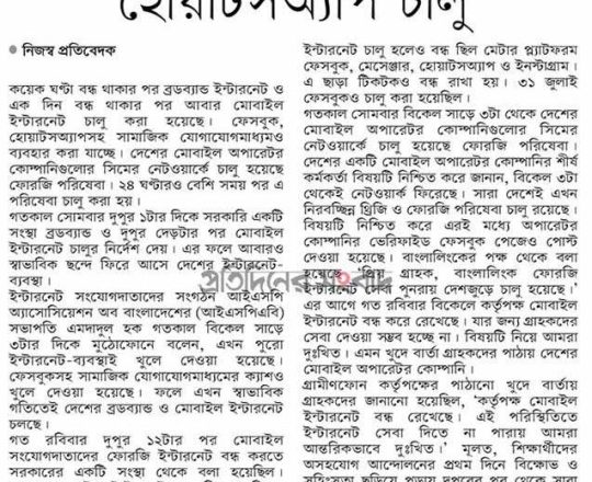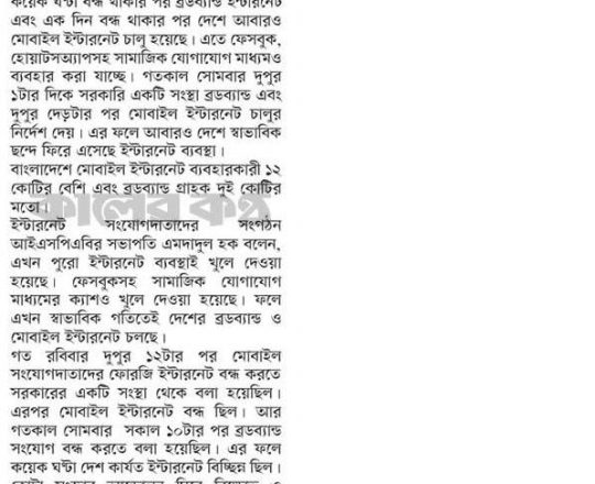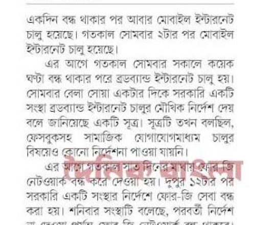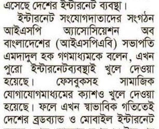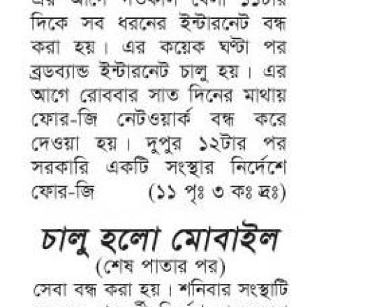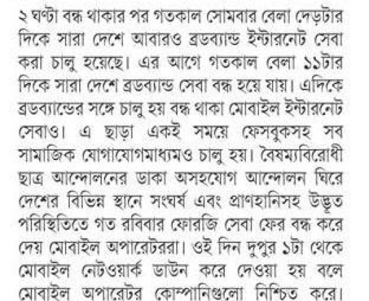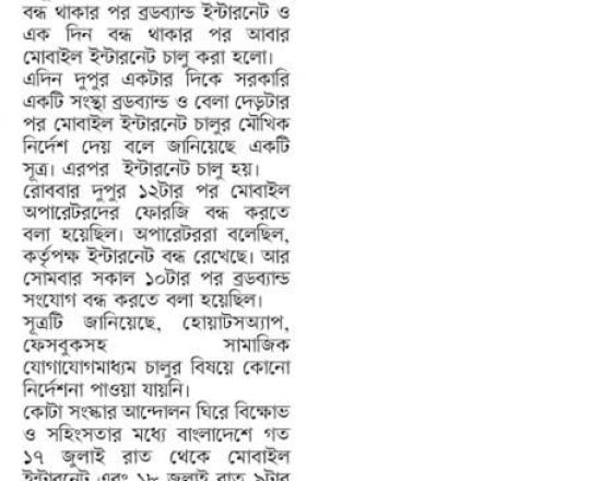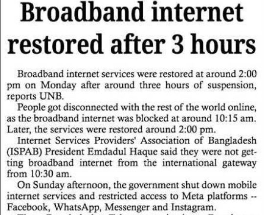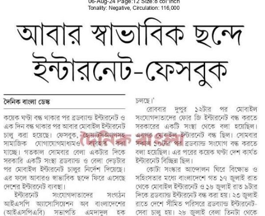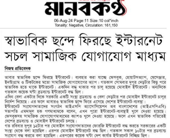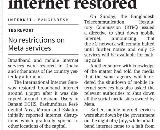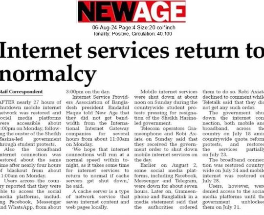 Business Standard, 6 August 2024, Broadband, mobile internet restored