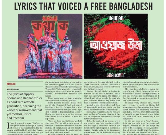 Business Standard, 6 August 2024, LYRICS THAT VOICED A FREE BANGLADESH