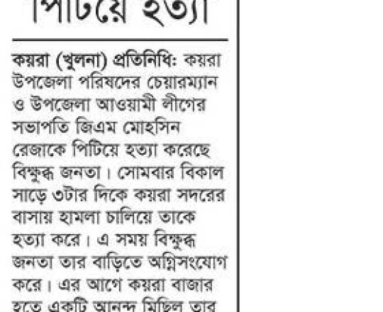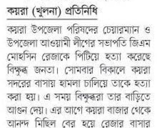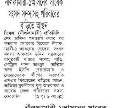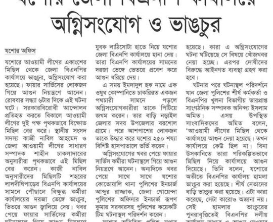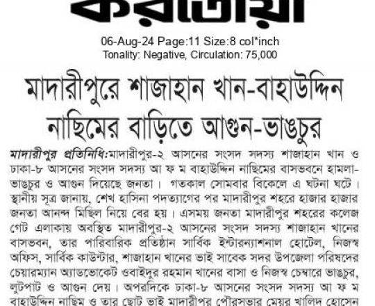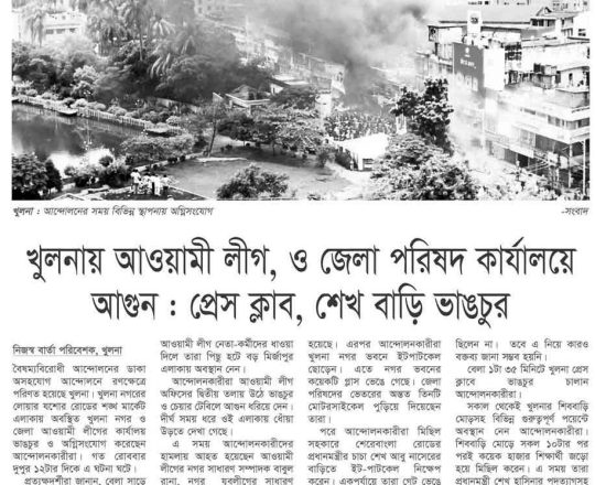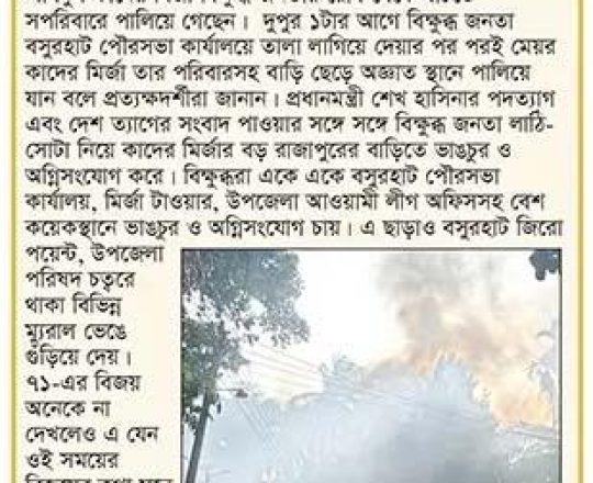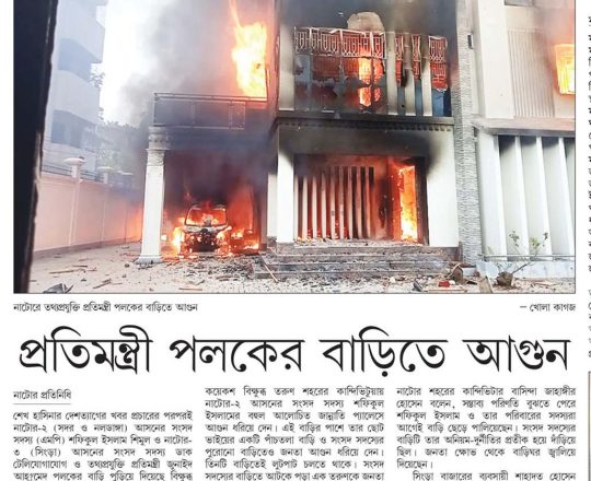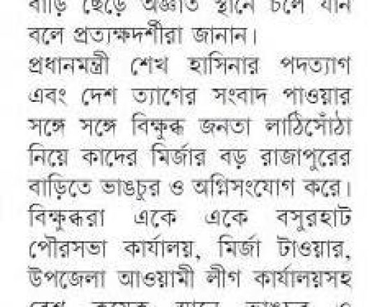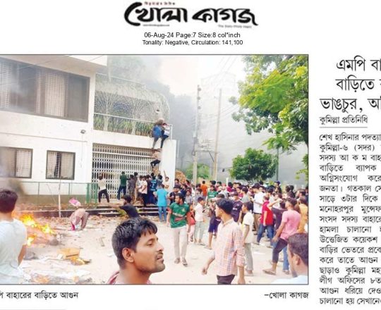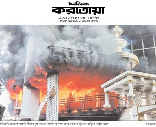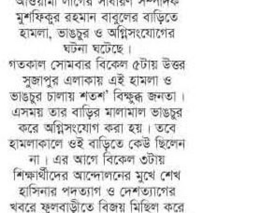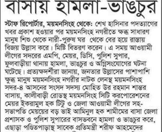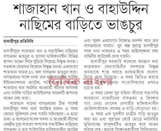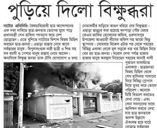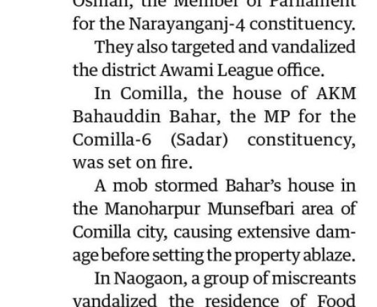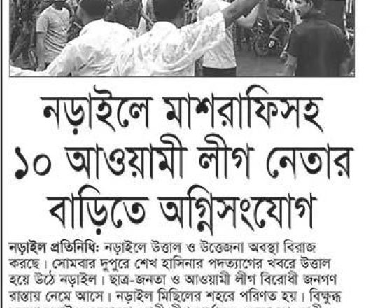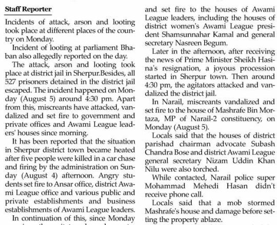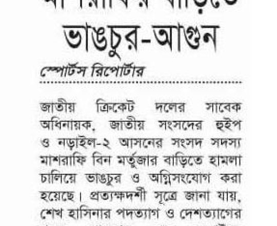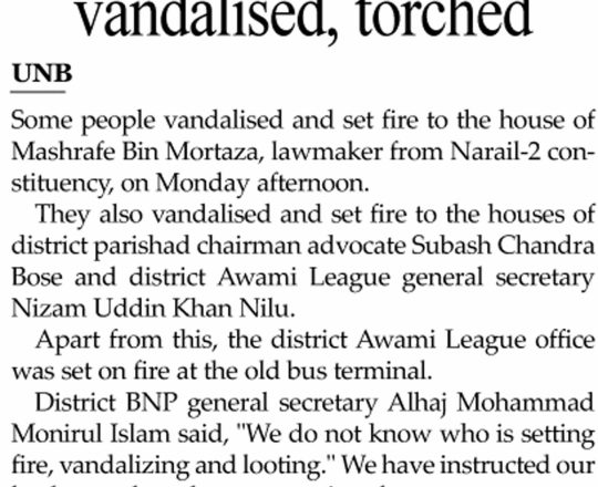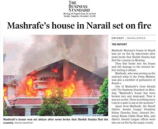 Business Standard, 6 August 2024, Mashrafe's house in Narail set on fire