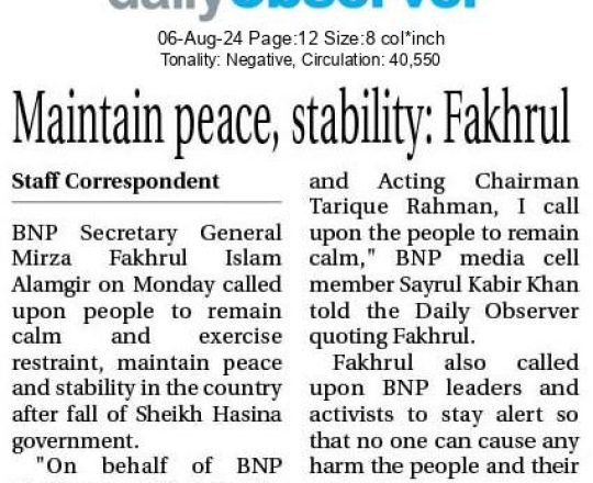Daily Observer, 6 August 2024, Maintain peace, stability: Fakhrul