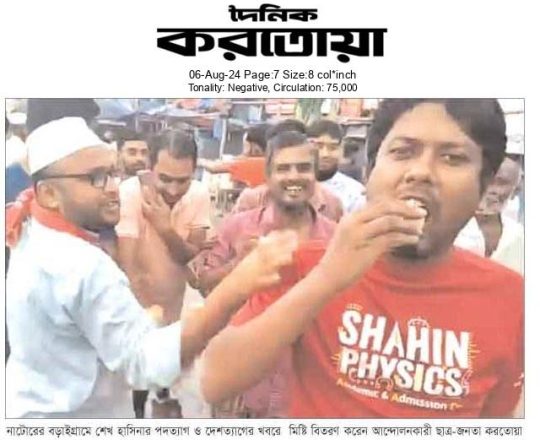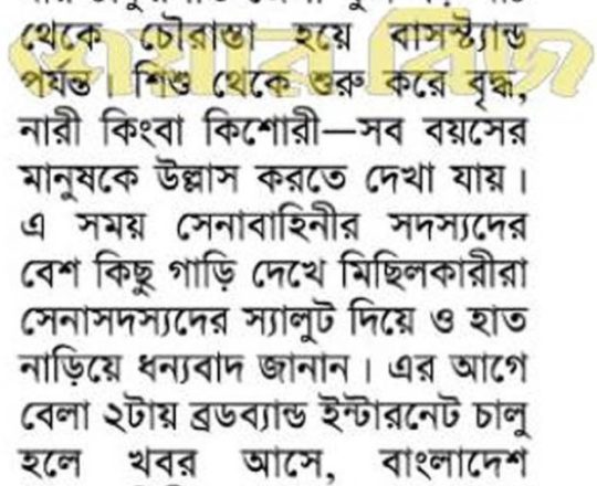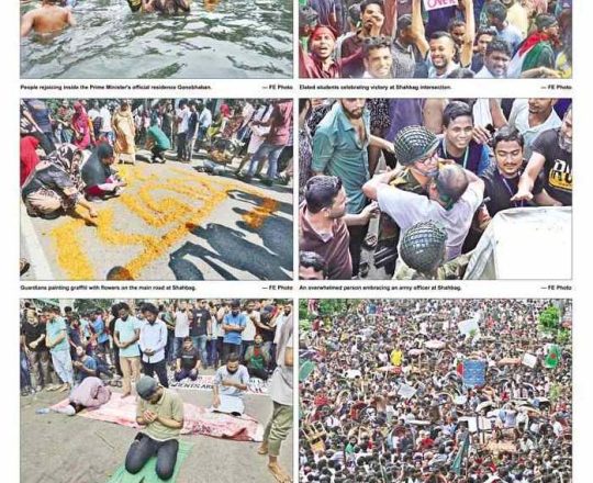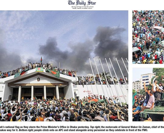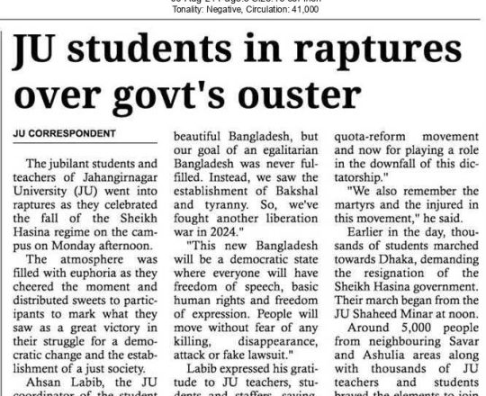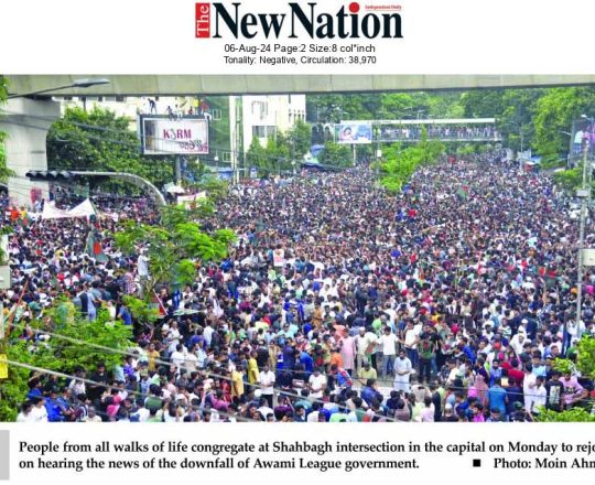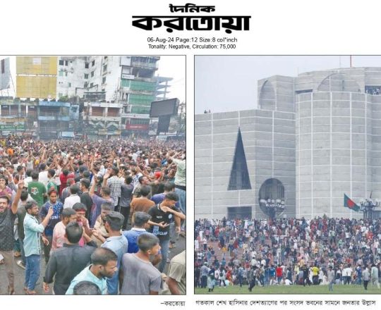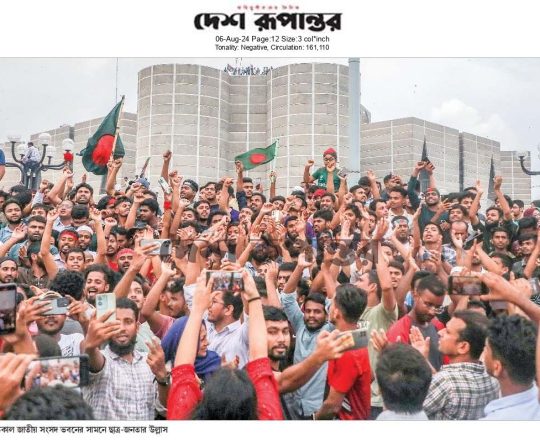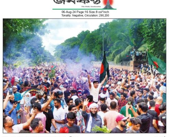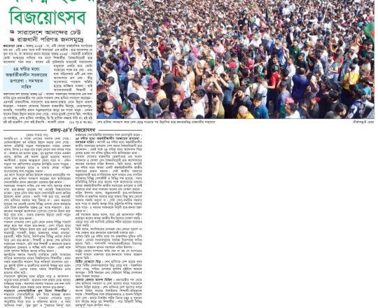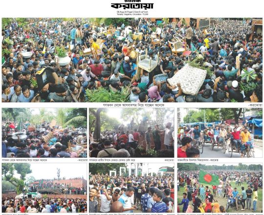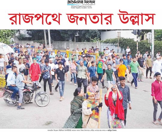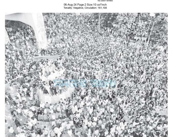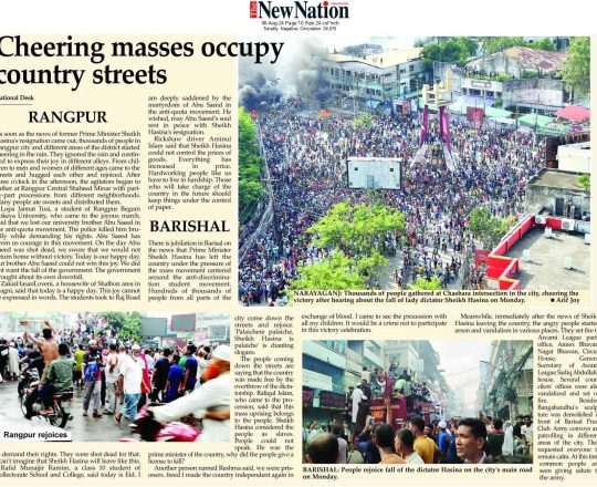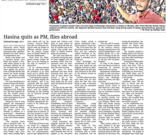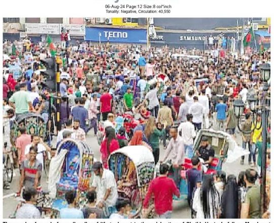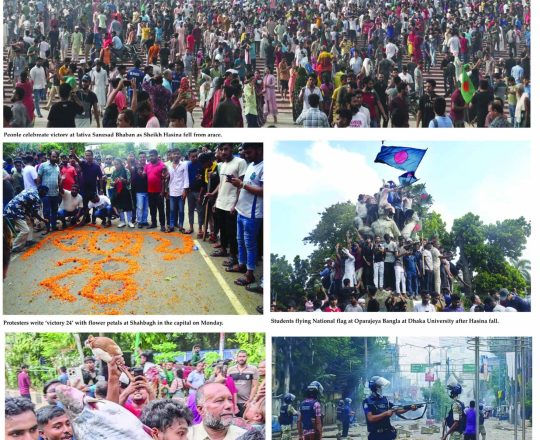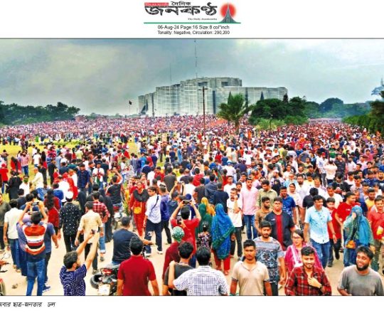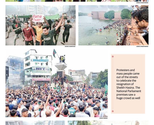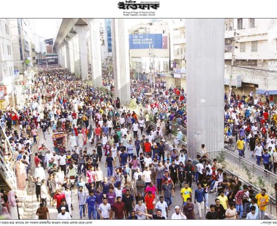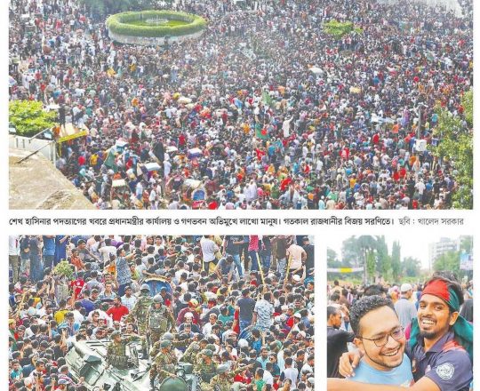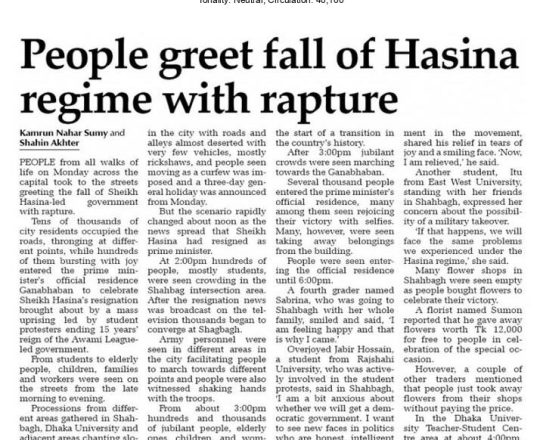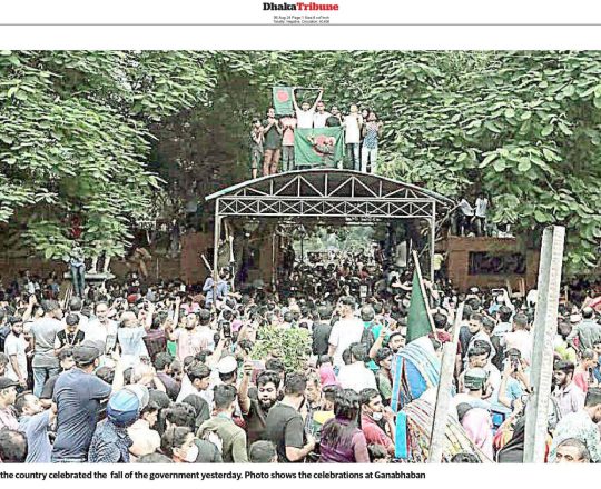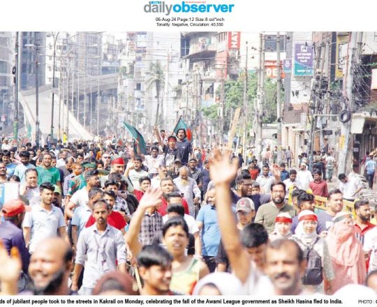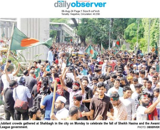 Daily Observer, 6 August 2024, Jubilant crowds gathered at Shahbagh in the city on Monday